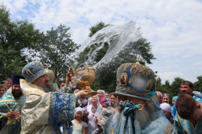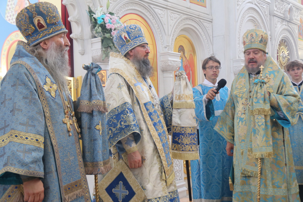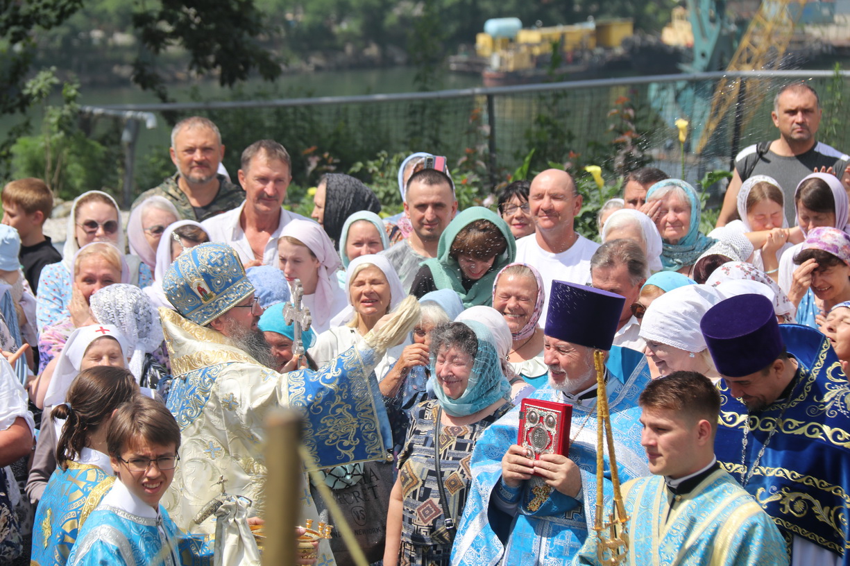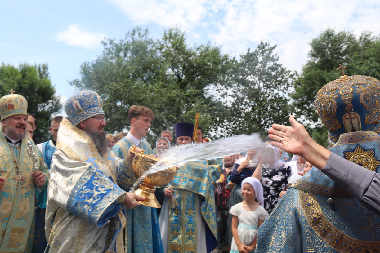 После заамвонной молитвы архипастыри, духовенство и верующие совершили с чтимой иконой крестный ход вокруг храма, было прочитано Богородичное зачало из Евангелия, а верующих окропляли святой водой.