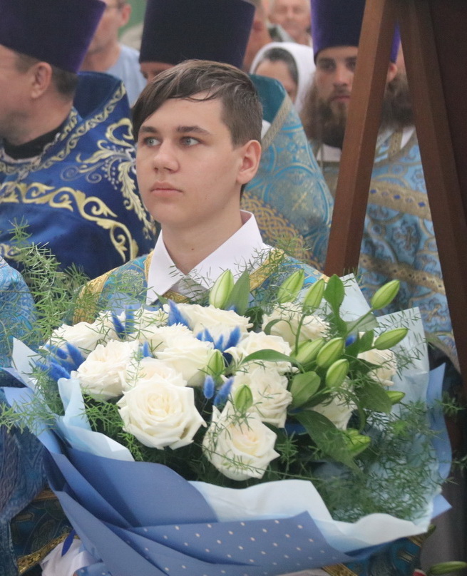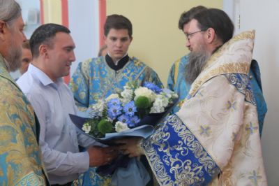В алтаре храма, с праздником митрополита Павла поздравил глава Находкинсгого городского округа Тимур Владимирович Магинский и преподнес Владыке букет цветов.