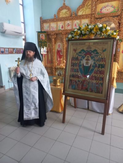 Вечером, 22 июля, в храме Преображения Господня пгт.Преображение встретили икону "Собор святых покровителей воинства российского".