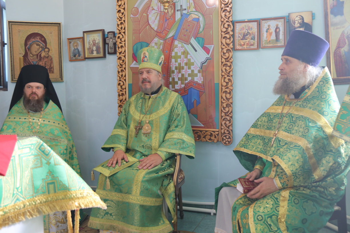 Владыке сослужили: настоятель храма иеромонах Августин (Глазунов); протоиерей Андрей Гречишников, настоятель храма Успения Божией Матери c. Владимиро-Александровское; иерей Иоанн Капитанюк, настоятель храма Рождества Христова г. Находки; иерей Андрей Шкулипа, настоятель храма прп. Сергия Радонежского с. Сергеевка; иеромонах Гавриил (Гаврик), настоятель храма Преображения Господня пгт. Преображение; иерей Илия Гречишников, клирик Казанского Кафедрального собора г. Находки