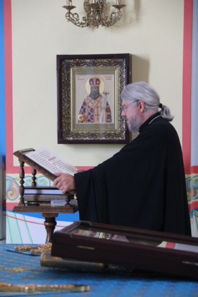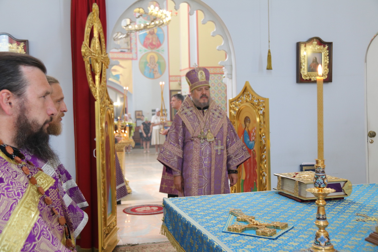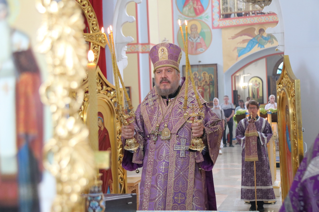 В канун Происхождения Честны?х Древ Животворящего Креста Господня епископ Находкинский и Преображенский Николай совершил вечернее богослужение в Казанском соборе г. Находки