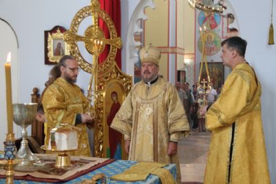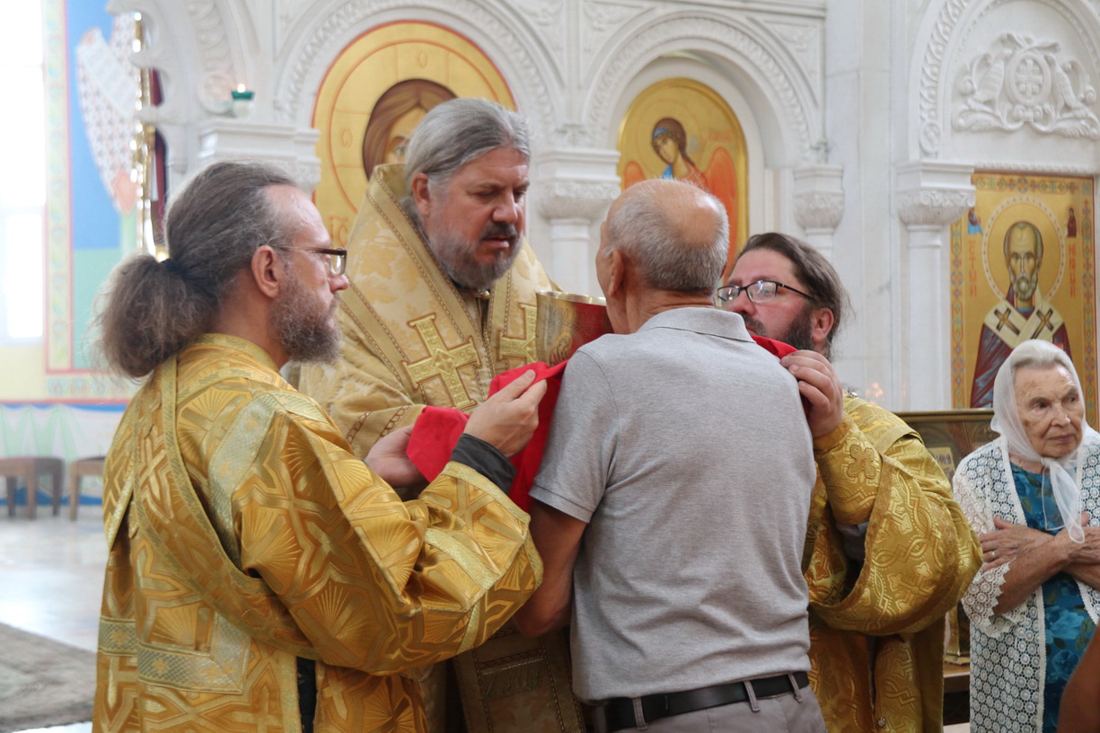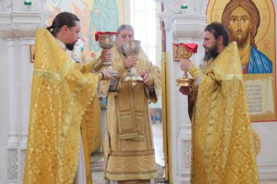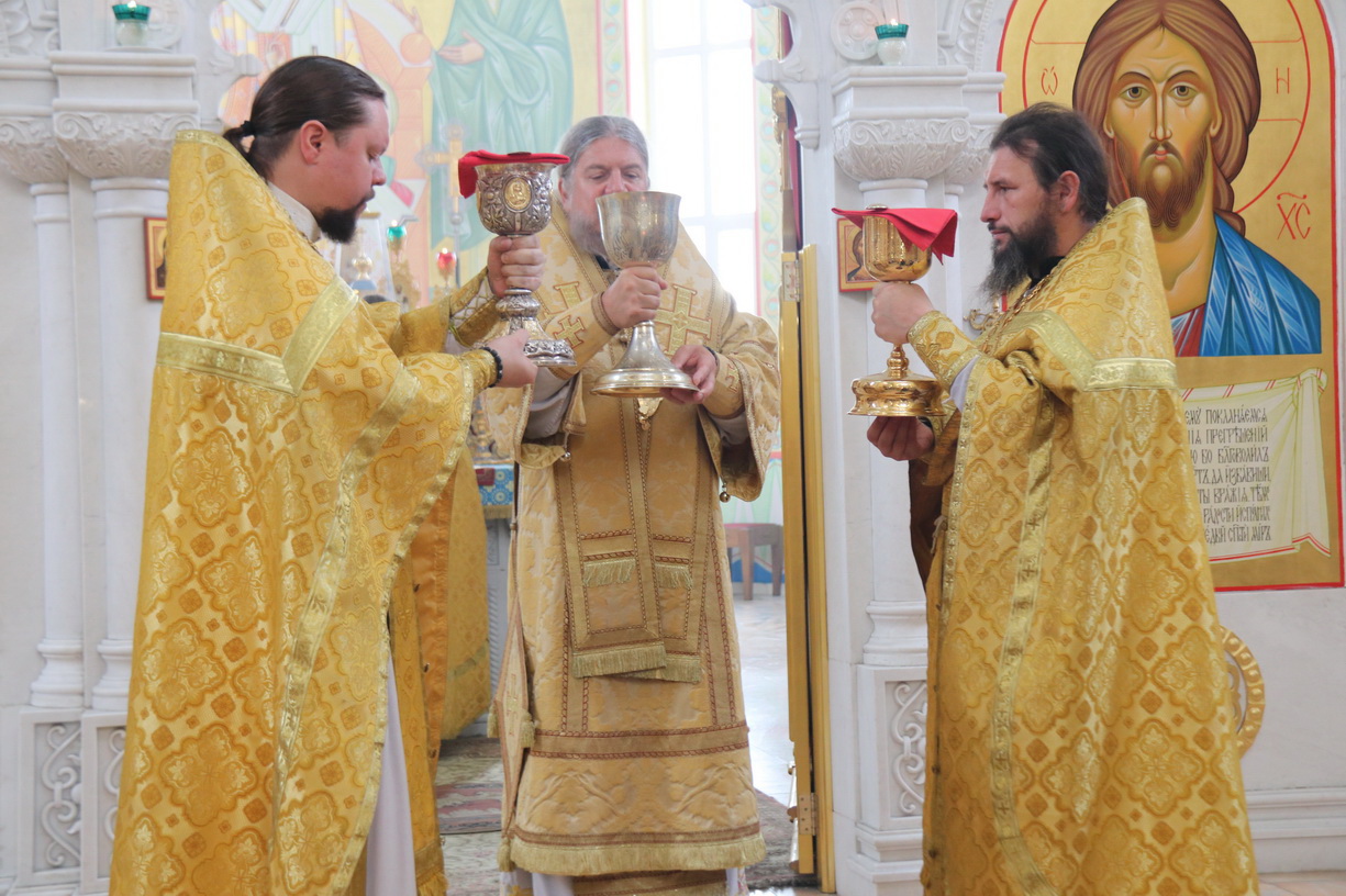 Его Преосвященству сослужили: иерей Андрей Калнин; иерей Андрей Попов; иеромонах Ермоген (Крещенко) и иерей Иоанн Гречишников.