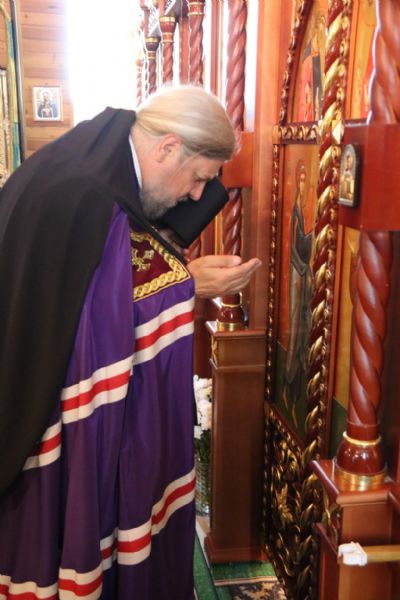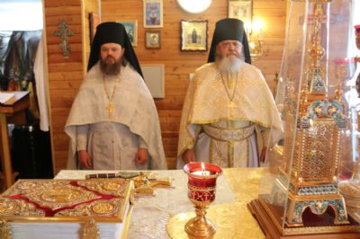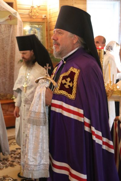 Его Преосвященству сослужили: иеромонах Гавриил (Гаврик), настоятель Свято-Преображенского храма пгт. Преображение; иеромонах Августин (Глазунов), настоятель храма в честь прп. Серафима Саровского п. Лазо; иерей Андрей Калнин, благочинный Казанского собора г. Находки.