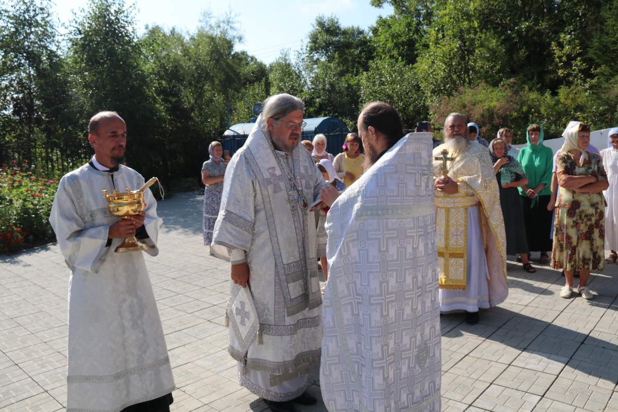 По заамвонной молитве епископ Николай, по традиции, совершил чин освящения плодов нового урожая, после чего обратился к верующим с проповедью, посвященной духовному значению праздника Преображения Господня.
