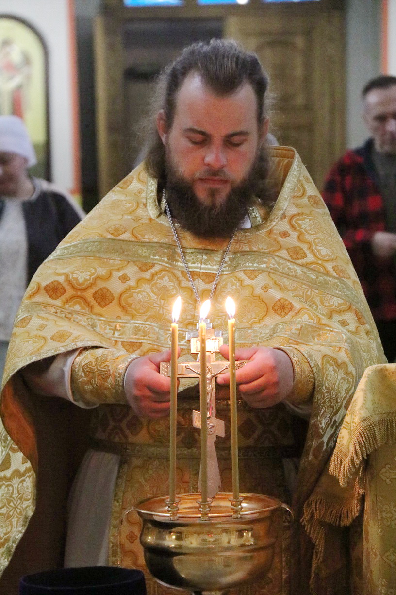 Его Преосвященству сослужили: иерей Андрей Калнин; иерей Виталий Шаркеев; иерей Иоанн Гречишников.