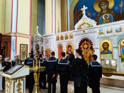 7 октября 2025 года курсанты Дальневосточного мореходного училища посетили Собор Казанской иконы Божией г. Находки. Экскурсию по храмовому комплексу для гостей провел руководитель миссионерского отдела Находкинской епархии, иерей Виталий Шаркеев. Также курсанты-первокурсники побывали на вечернем богослужении в канун дня памяти преподобного Сергия, игумена Радонежского.