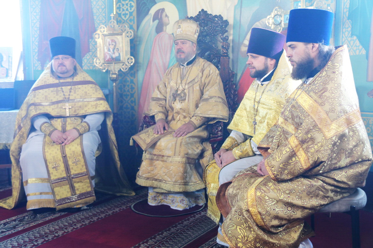 Его Преосвященству сослужили: иерей Роман Капитанюк, настоятель храма святого апостола Андрея Первозванного ЗАТО г. Фокино, благочинный Западного благочиния Находкинской Епархии; иерей Иоанн Капитанюк, настоятель храма Рождества Христова г. Находки; иерей Иоанн Гречишников, клирик Казанского Кафедрального собора г. Находки.