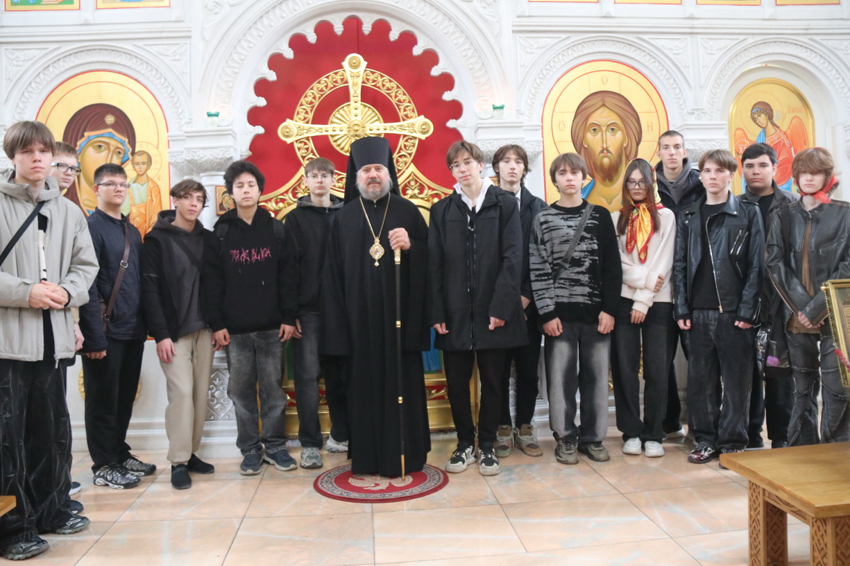 Ребята, войдя в двери собора, оказались на праздничной Божественной Литургии, которую возглавил епископ Находкинский и Преображенский Николай. Кратко ознакомившись с ходом богослужения, устройством православного храма, с интересом и любопытством наблюдали за происходящим.