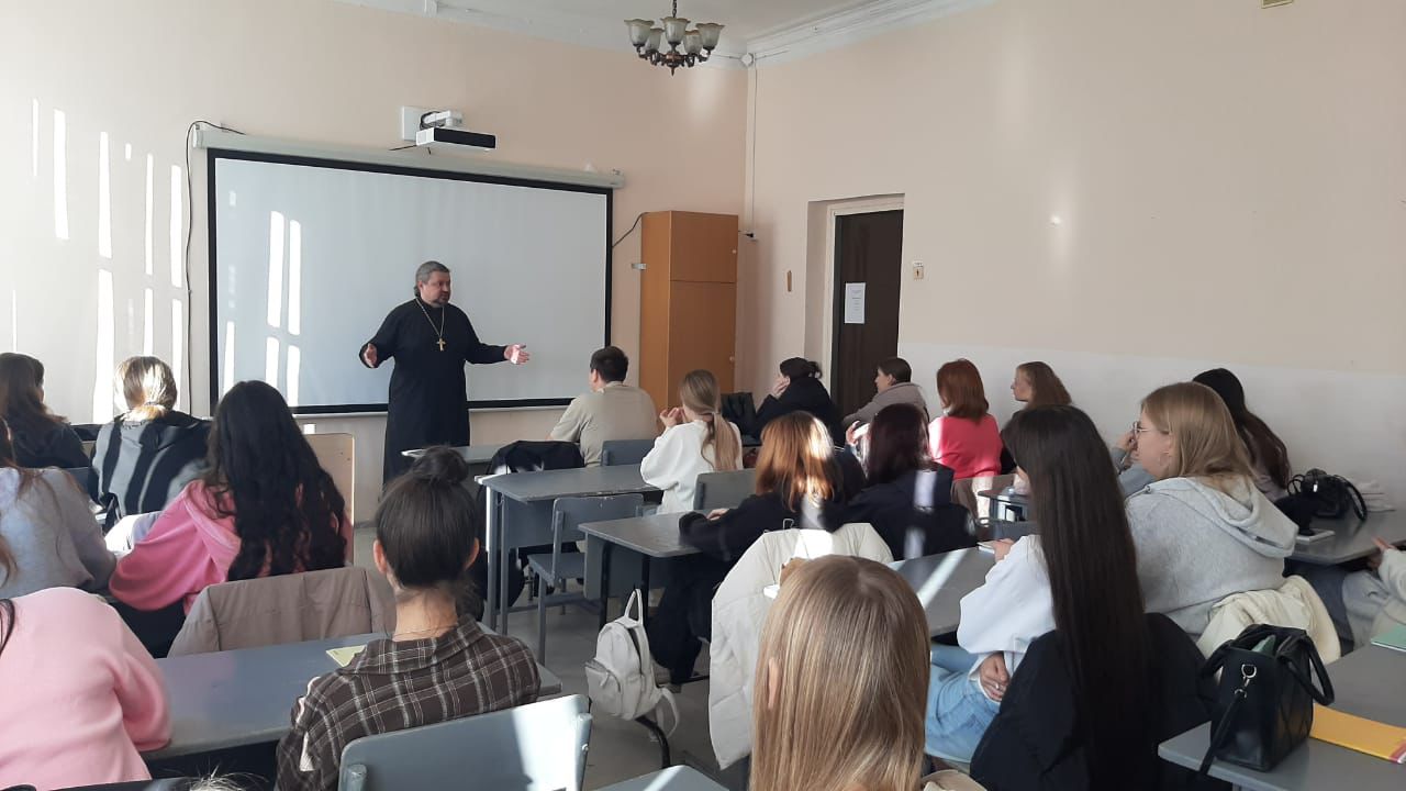 Руководитель миссионерского отдела Находкинской епархии иерей Виталий Шаркеев встретился со студентами-первокурсниками Находкинского государственного гуманитарно-политехнического колледжа.