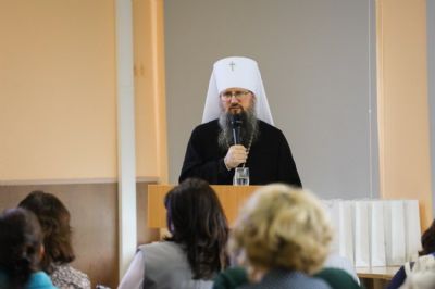 - По учению Православной Церкви, самое красивое творение на земле — это душа человеческая, соединенная с Божией благодатью. И над этой красотой, конечно, нужно много трудиться. Господь создал нашу душу, но мы должны еще много вложить труда, чтобы она стала богоподобной. И к этому сотворчеству особенно призваны педагоги. Они также ответственны за души вверенных им детей. И тут, конечно, своими силами не обойтись, поэтому и на сегодняшние труды, и на всю вашу деятельность мы просим у Господа благословения, чтобы вы взращивали души хороших, добрых людей.