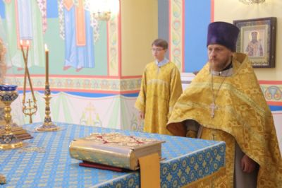 Его Преосвященству сослужили: иерей Андрей Калнин; иерей Виталий Шаркеев; иерей Иоанн Гречишников; Илия Гречишников.
