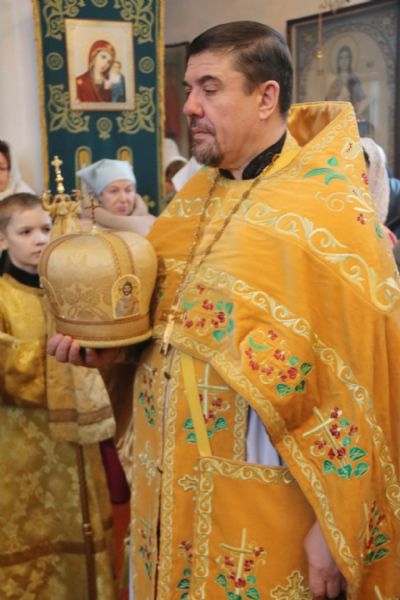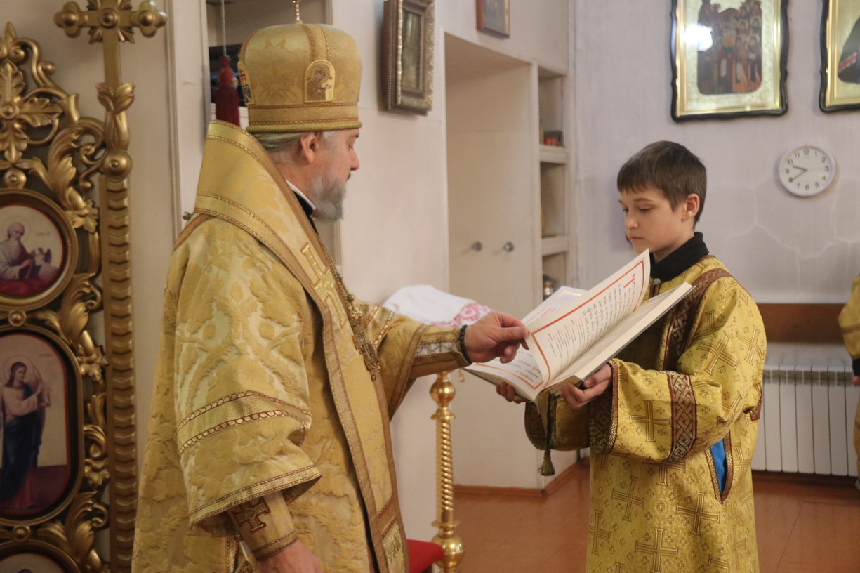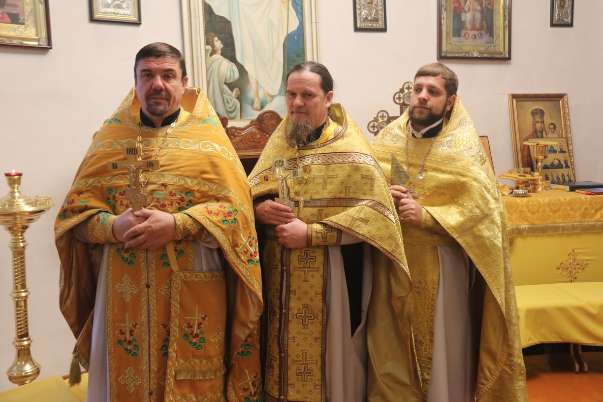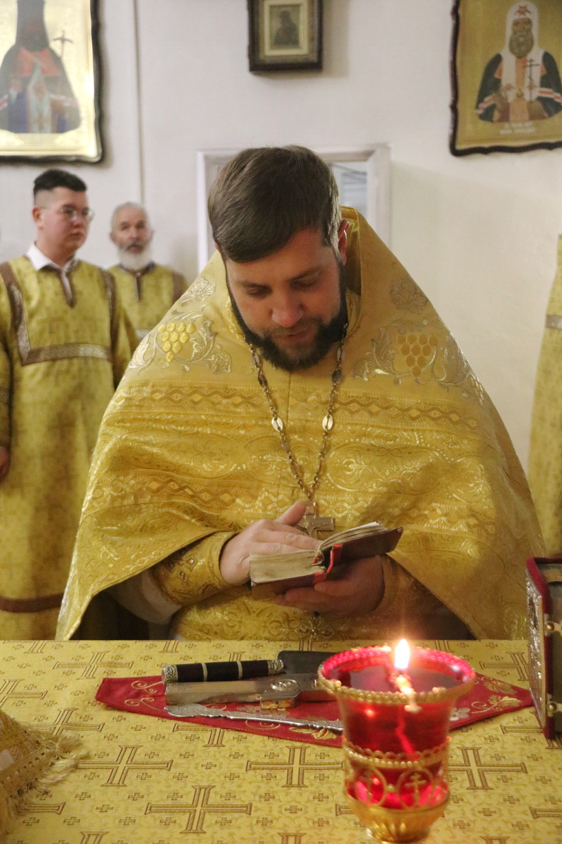 Его Преосвященству сослужили: иерей Роман Капитанюк, руководитель епархиального отдела духовного образования и катехизации, настоятель Свято-Андреевского храма ЗАТО г. Фокинo; протоиерей Владимир Серебренников, настоятель храма святого равноапостольного князя Владимира п. Ливадия; иерей Иоанн Капитанюк, настоятель храма Рождества Христова г. Находки; иерей Алексий Пикулин, настоятельСвято-Иверского храма пгт.Смоляниново; иерей Алексий Усанов, клирик Свято-Андреевского храма г.Фокино.