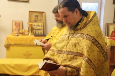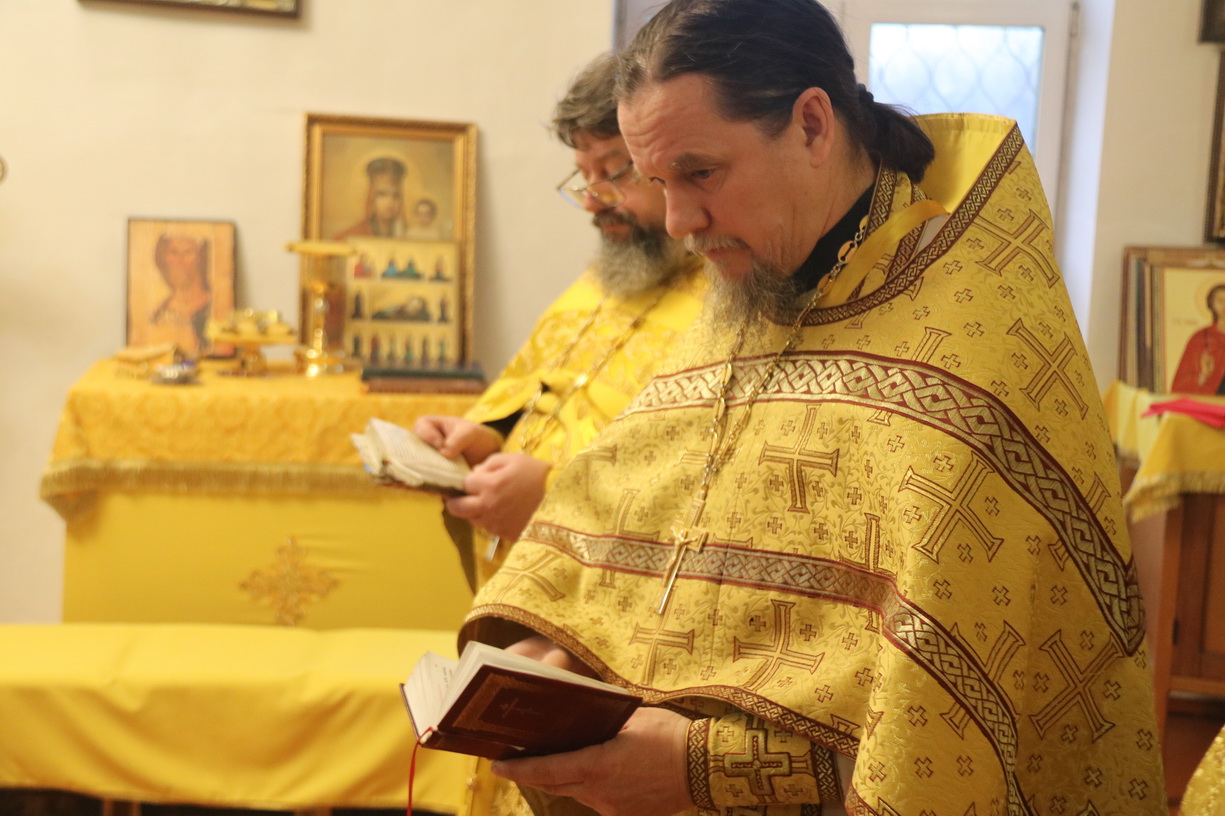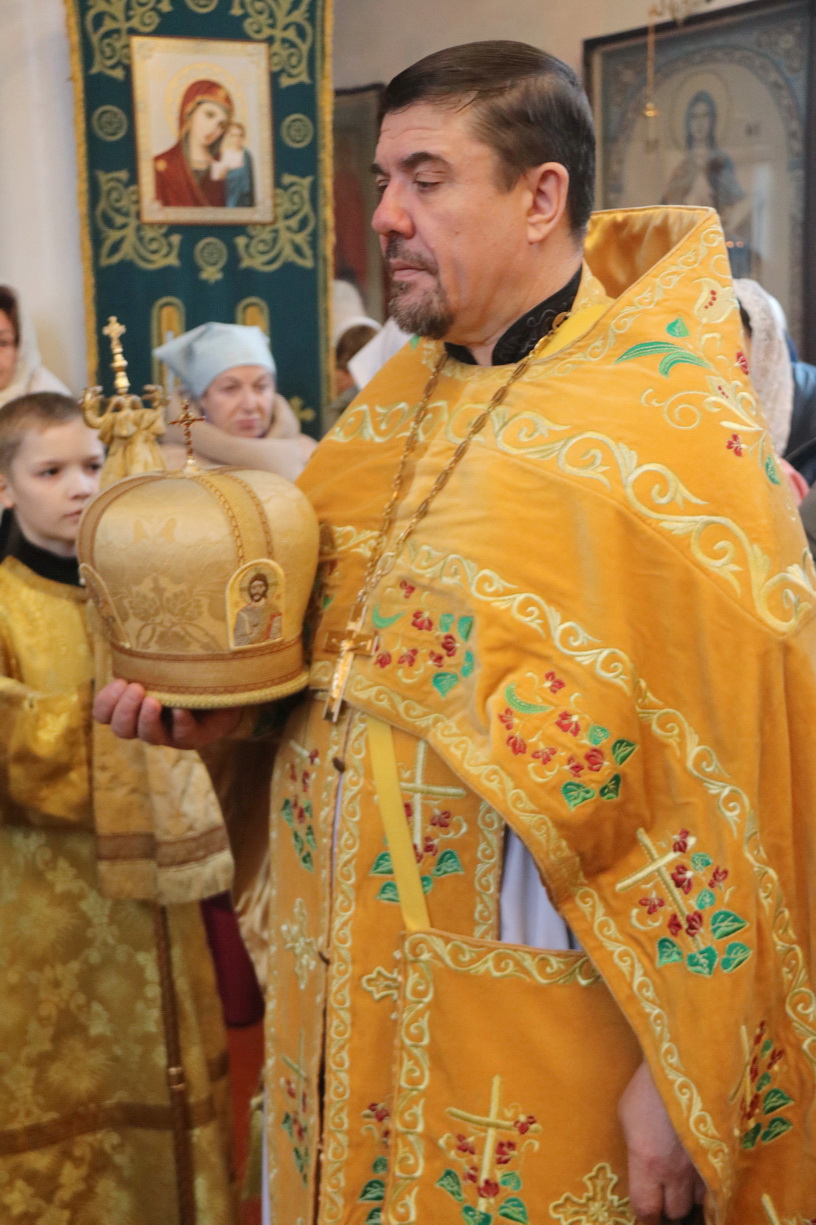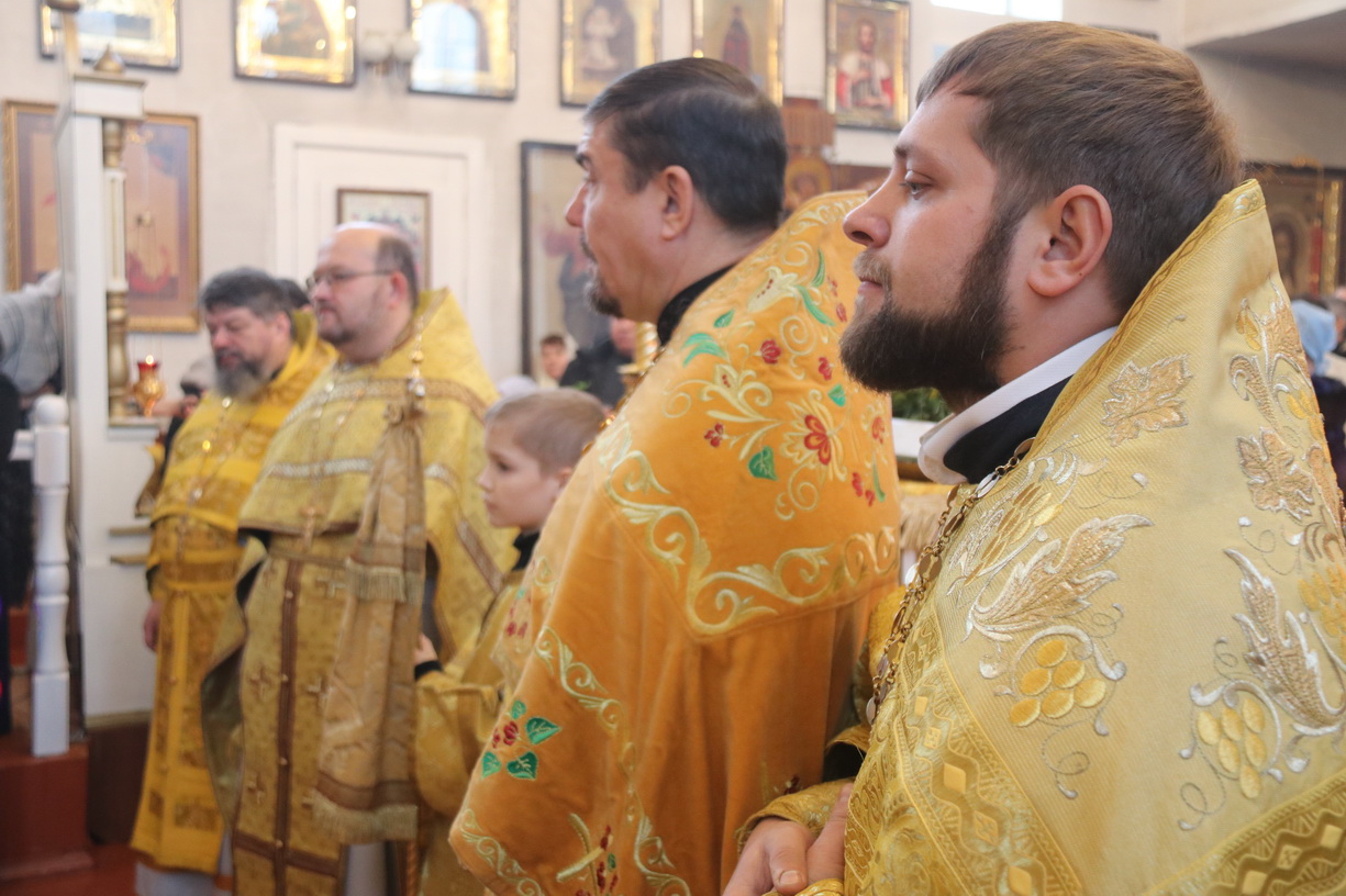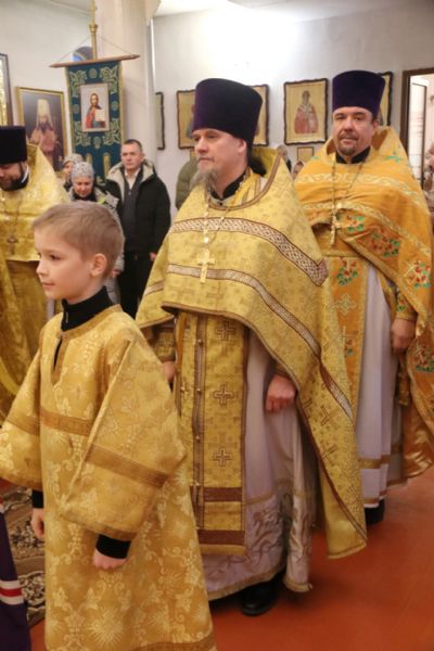 Его Преосвященству сослужили: иерей Роман Капитанюк, руководитель епархиального отдела духовного образования и катехизации, настоятель Свято-Андреевского храма ЗАТО г. Фокинo; протоиерей Владимир Серебренников, настоятель храма святого равноапостольного князя Владимира п. Ливадия; иерей Иоанн Капитанюк, настоятель храма Рождества Христова г. Находки; иерей Алексий Пикулин, настоятельСвято-Иверского храма пгт.Смоляниново; иерей Алексий Усанов, клирик Свято-Андреевского храма г.Фокино.