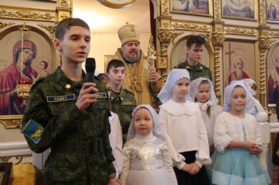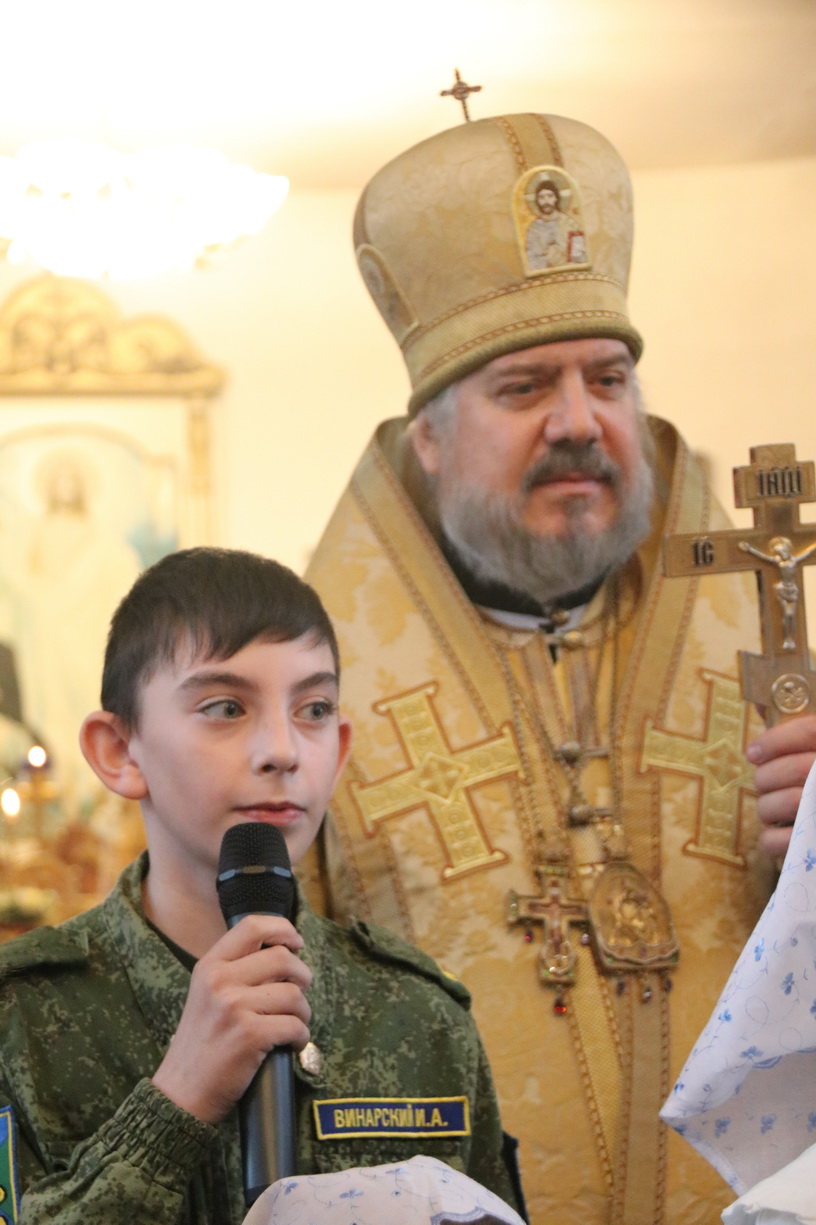 Со стихотворным поздравлением архипастырю, духовенству и всем прихожанам храма выступили воспитанники воскресной школы.