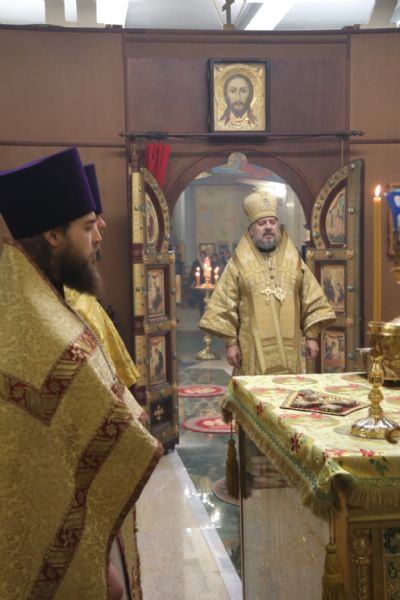 Его Преосвященству сослужили: иерей Иоанн Капитанюк, настоятель храма Рождества Господня г. Находки; иерей Иоанн Гречишников, настоятель храма Живоначальной Троицы п. Врангель и иерей Андрей Попов, клирик Казанского собора