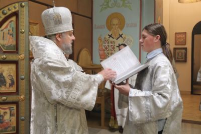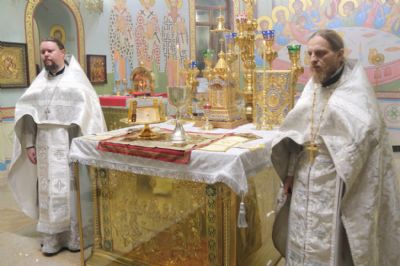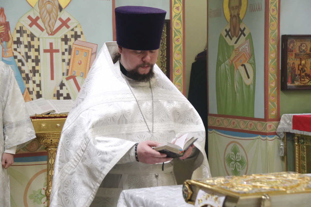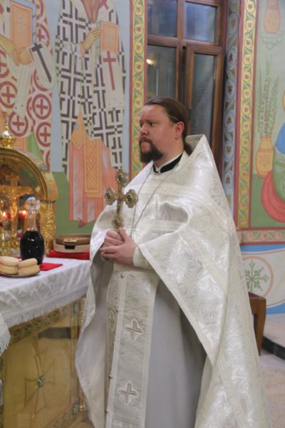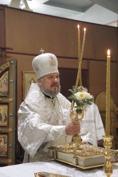 Его Преосвященству сослужили: иерей Андрей Калнин и иерей Андрей Попов.