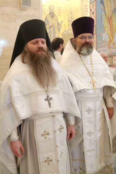 Архипастырям сослужили: протоиерей Игорь Талько, секретарь Владивостокской епархии иерей Илия Талько, ключарь Спасо-Преображенского собора иерей Максим Точуков, ответственный за сестричество социального отдела епархии протоиерей Александр Талько, протоиерей Максим Романенко, руководитель отдела епархиального религиозного образования и катехизации протоиерей Ростислав Мороз, игумен Антоний (Каменчук), протоиерей Вадим Маишев, протоиерей Даниил Нефедьев, протоиерей Андрей Калчев, протоиерей Димитрий Федорин, благочинные благочиний Владивостокской епархии и духовенство епархии.