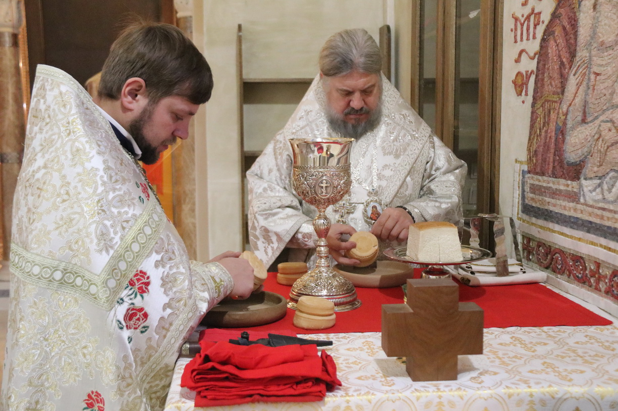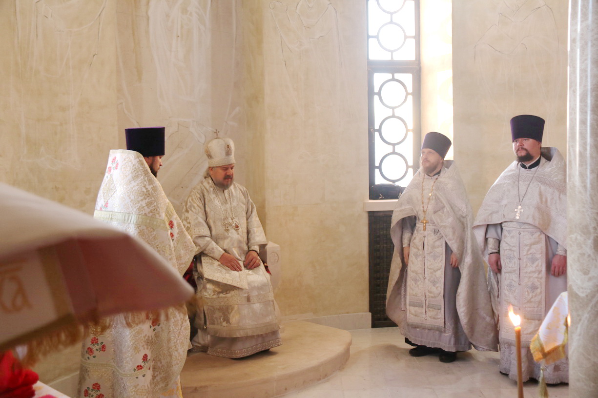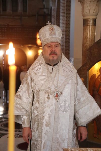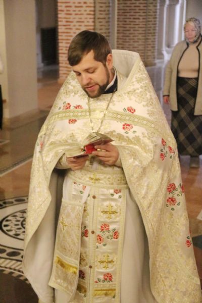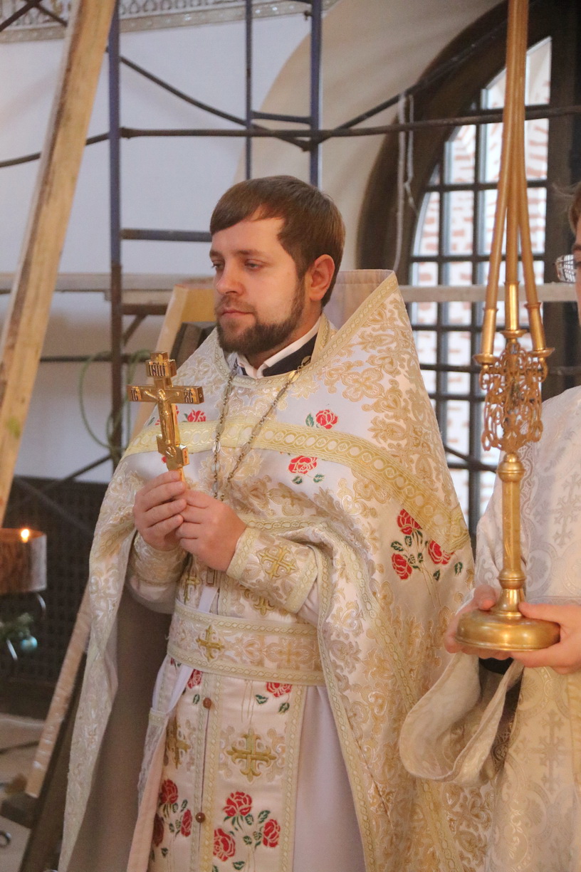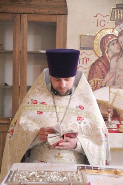Его Преосвященству сослужили: иерей Иоанн Капитанюк, настоятель храма Рождества Христова г. Находки; иерей Андрей Калнин, ключарь Казанского собора г. Находки; иерей Андрей Попов.