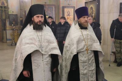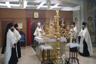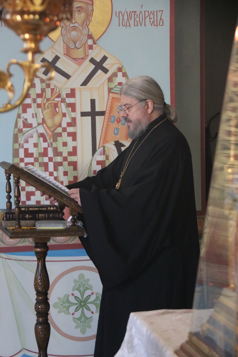 Его Преосвященству сослужили: иерей Андрей Калнин; иерей Андрей Попов; иеромонах Ермоген(Крещенко) и иерей Илия Гречишников.