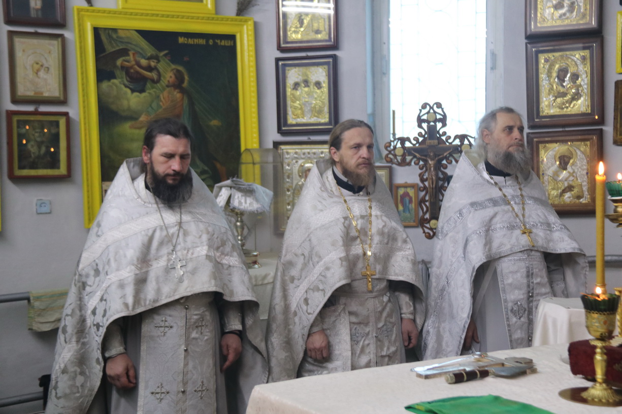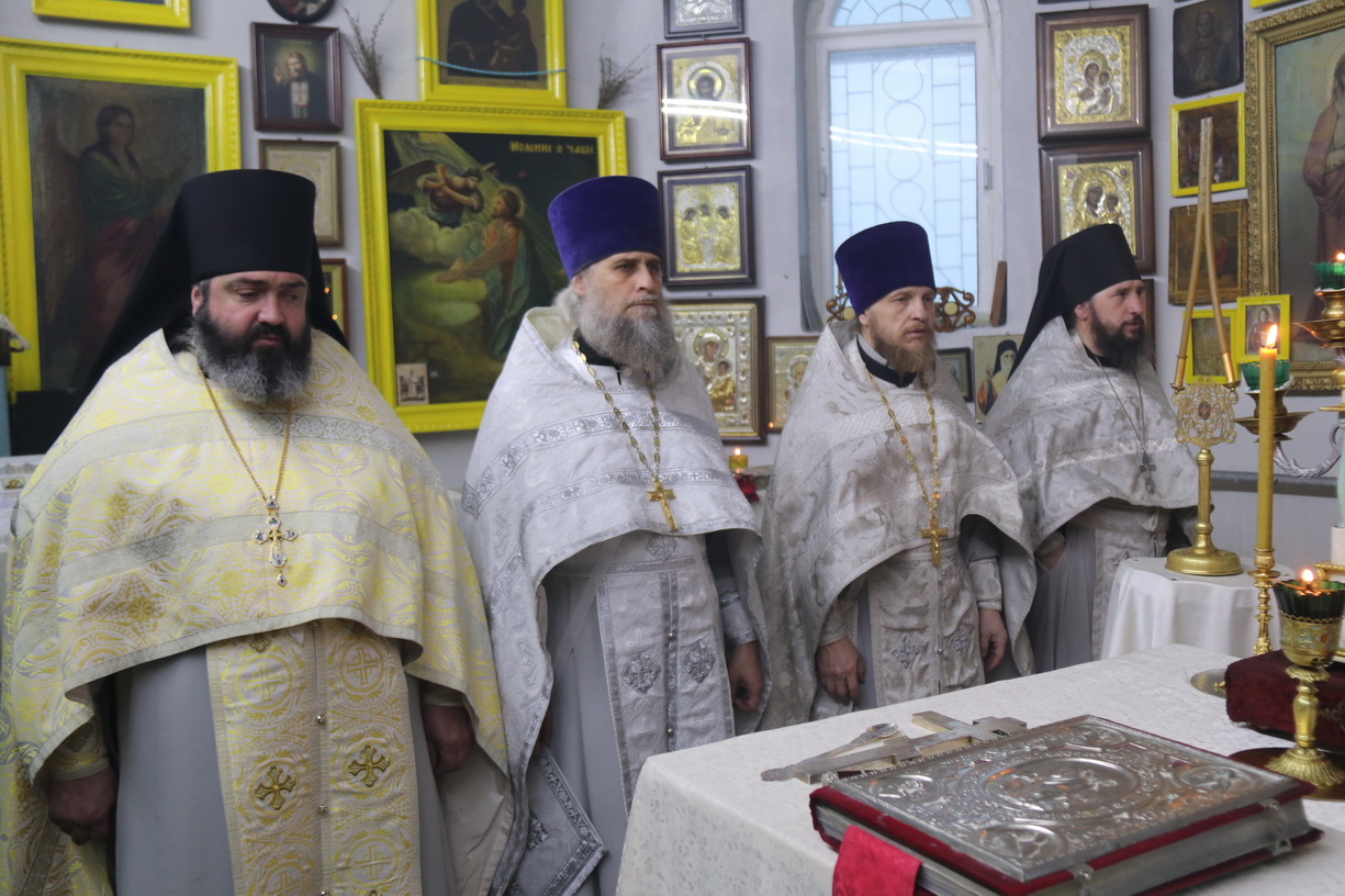 Его Преосвященству сослужили: митрофорный протоиерей Василий Кабанов, настоятель храма Рождества Пресвятой Богородицы, г. Партизанска; иеромонах Силуан (Березовский), настоятель храма Сретения Господня г. Партизанска; игумен Пимен (Литовкин), наместник Свято-Троицкого-Николаевского мужского монастыря п. Горные Ключи (пгт.Шмаковка); протоиерей Андрей Гречишников, настоятель Свято-Успенского храма с.Владимиро-Александровское; протоиерей Павел (Петрунин), настоятель храма Казанской иконы Божией Матери с.Казанка; иерей Андрей Калнин, ключарь Казанского Кафедрального собора г. Находки; иерей Иоанн Гречишников, настоятель храма Живоначальной Троицы п. Врангель; иерей Сергий Вовк, клирик Рождества-Богородицкого храма г. Партизанска; иеромонах Ермоген (Крещенко), клирик Казанского собора г. Находки.