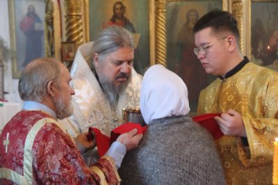 В заключение Владыка поздравил причастников с принятием Святых Христовых Таин и преподал благословение.