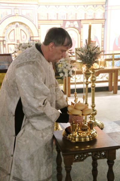 Затем Преосвященный епископ Николай совершил помазание освященным елеем духовенство и молящихся прихожан, поздравив каждого с праздником.