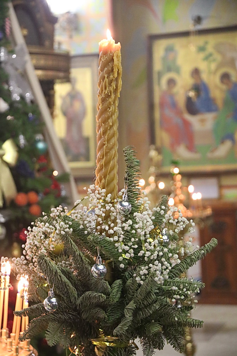 Праздничное богослужение включало в себя последование Великого повечерия, чина литии с освящением хлебов и полиелейной утрени, за которым было пропето величание Святому Богоявлению.