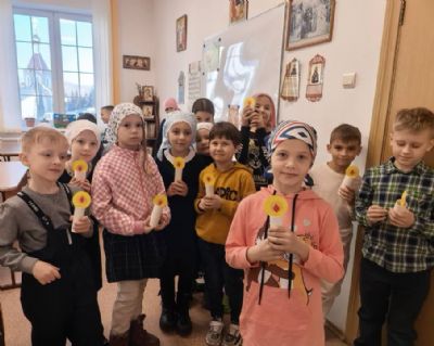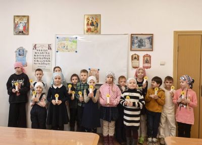 Занятие для воспитанников средней возрастной категории (8-12 лет) провела Зобнина Галина Анатольевна. Урок для воспитанников младшей возрастной категории (5-7 лет) провели педагоги Аксёнова Анна Михайловна и Стрельникова Кристина Анатольевна. Малыши узнали про традицию освящения свечей в праздник Сретения и выполнили творческое задание - поделку «свечечка».