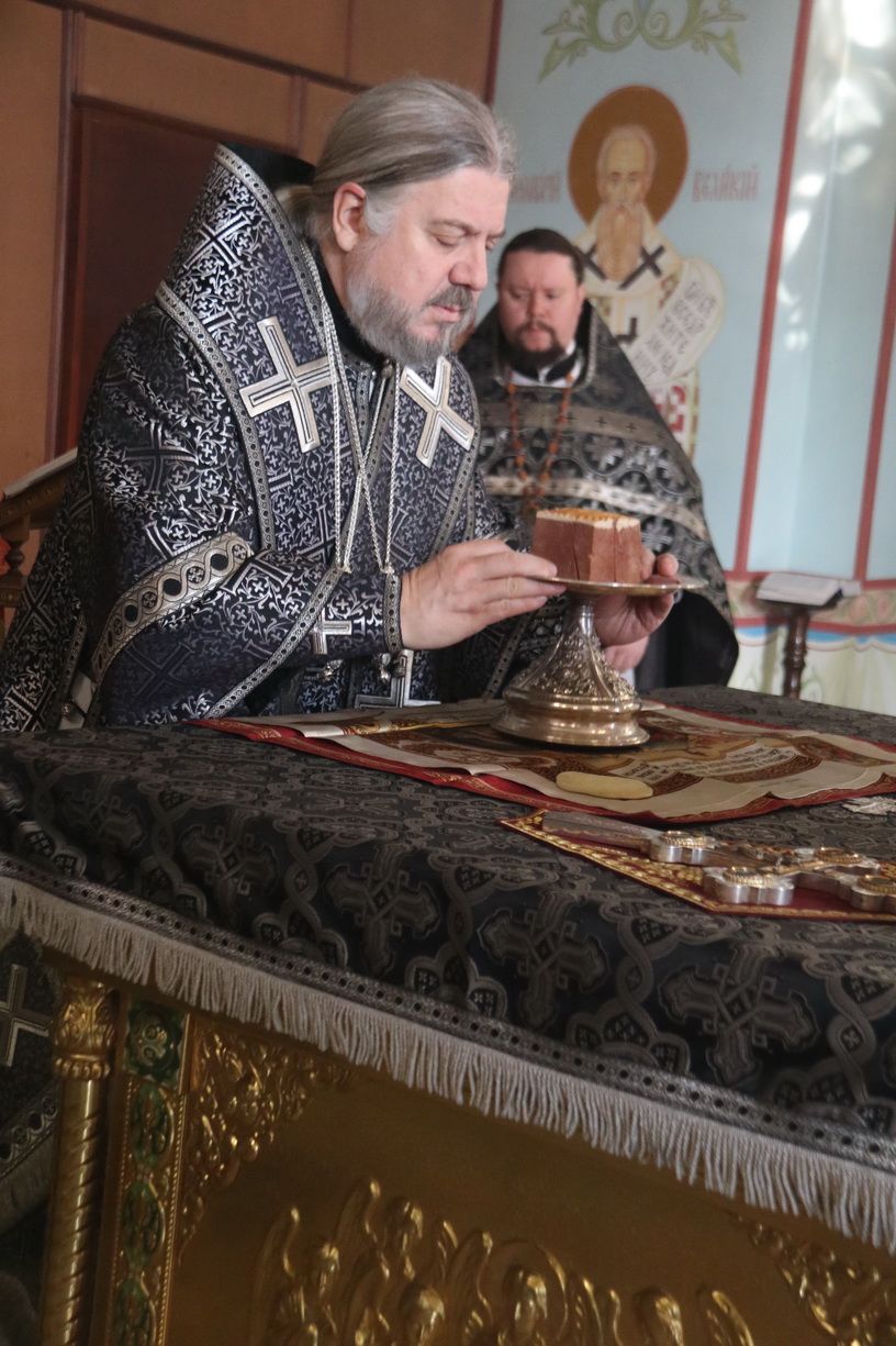 По сложившейся традиции, по окончании Литургии Преждеосвященных Даров в пятницу первой седмицы Великого поста был прочитан канон великомученику Федору Тирону, по прочтении которого владыка Николай освятил коливо и обратился к духовенству и к прихожанам с архипастырским словом.