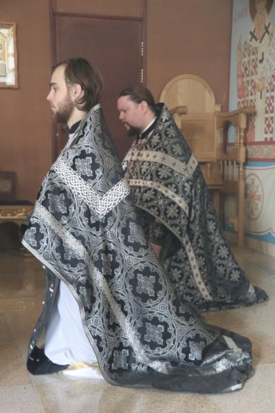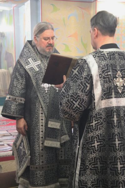 Его Преосвященству сослужили: иерей Андрей Калнин, ризничий собора; иерей Андрей Попов; иеромонах Ермоген (Крещенко) и иерей Илия Гречишников.
