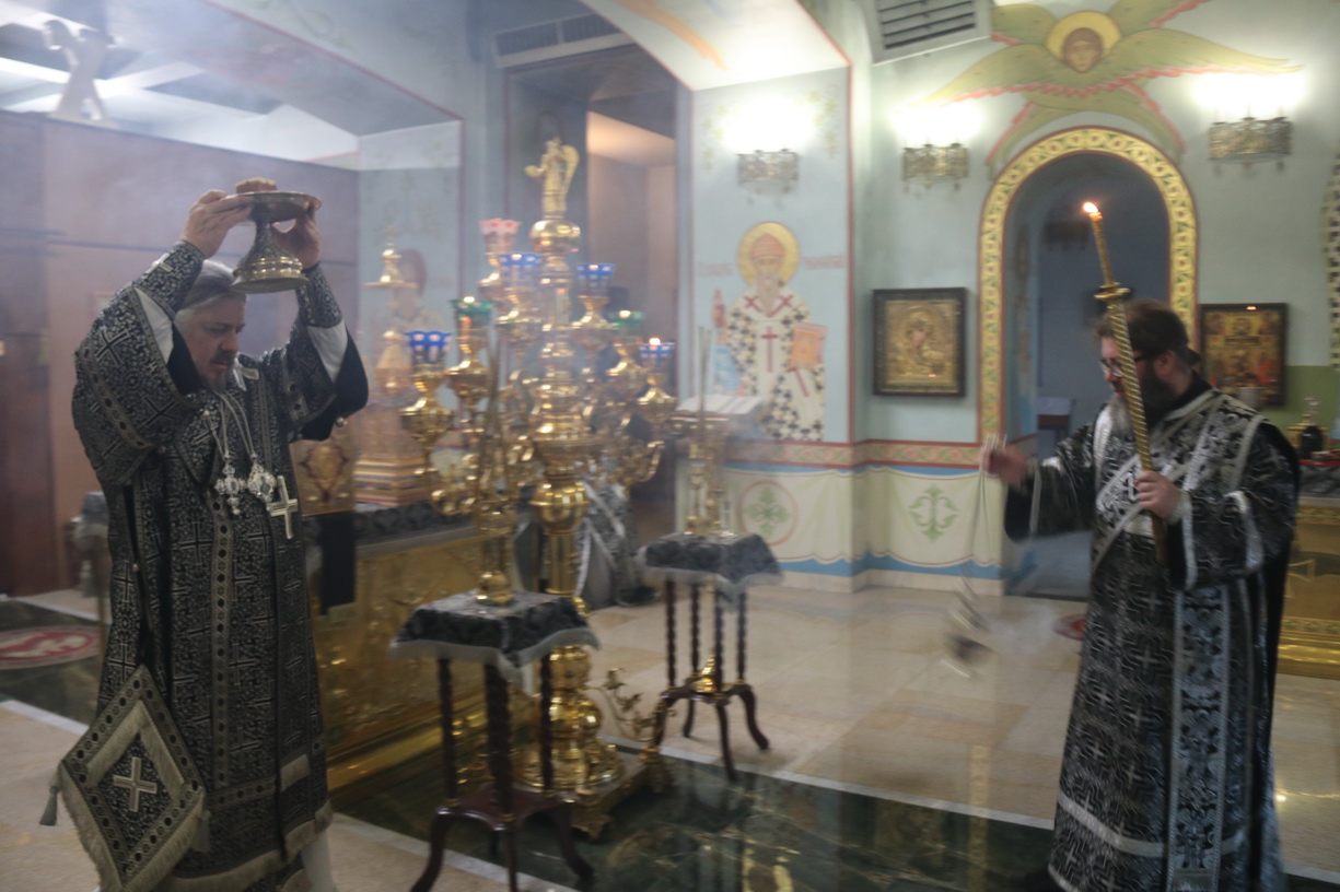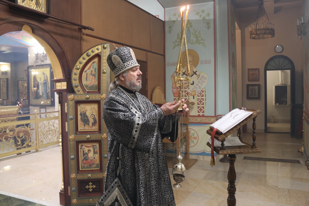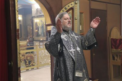 Его преосвященству сослужил иерей Роман Капитанюк, настоятель храма святого апостола Андрея первозванного и иерей Илия Гречишников.