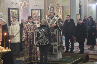 На утрене, после чтения уставного Евангельского зачала, Владыка помазал духовенство и прихожан освященным елеем.