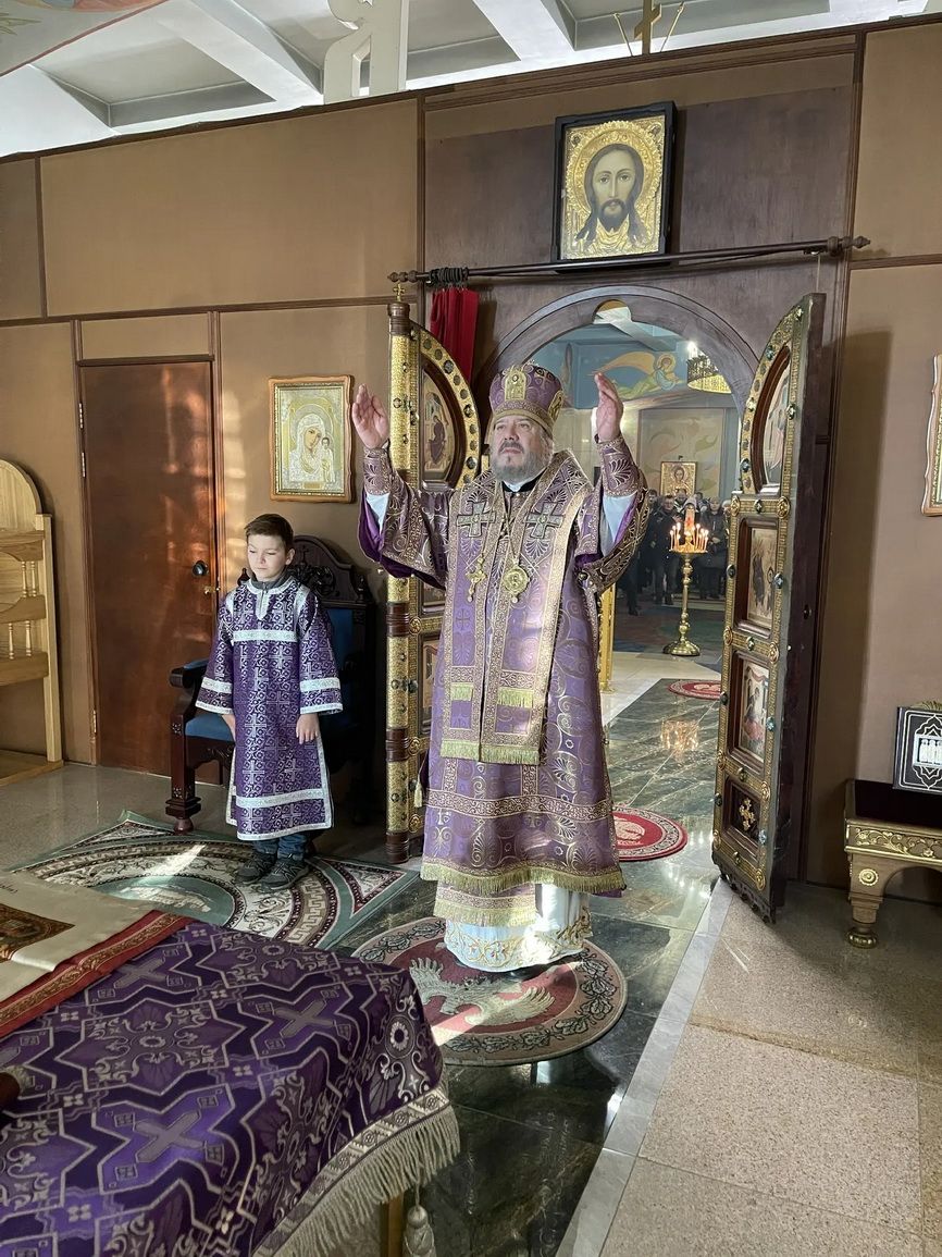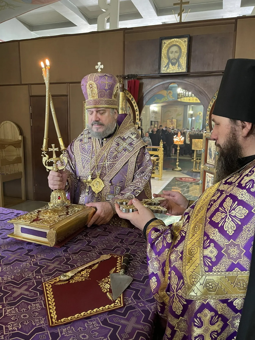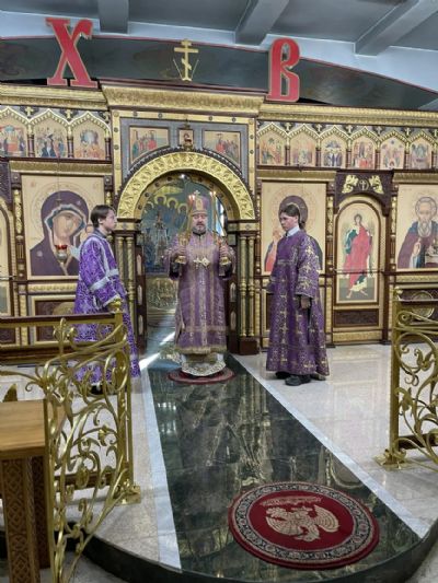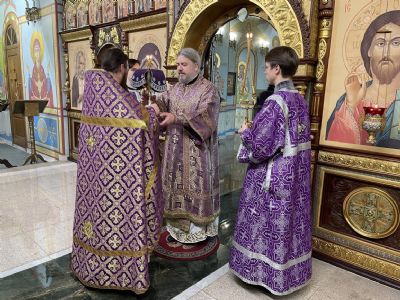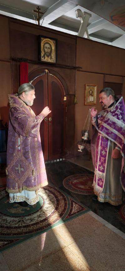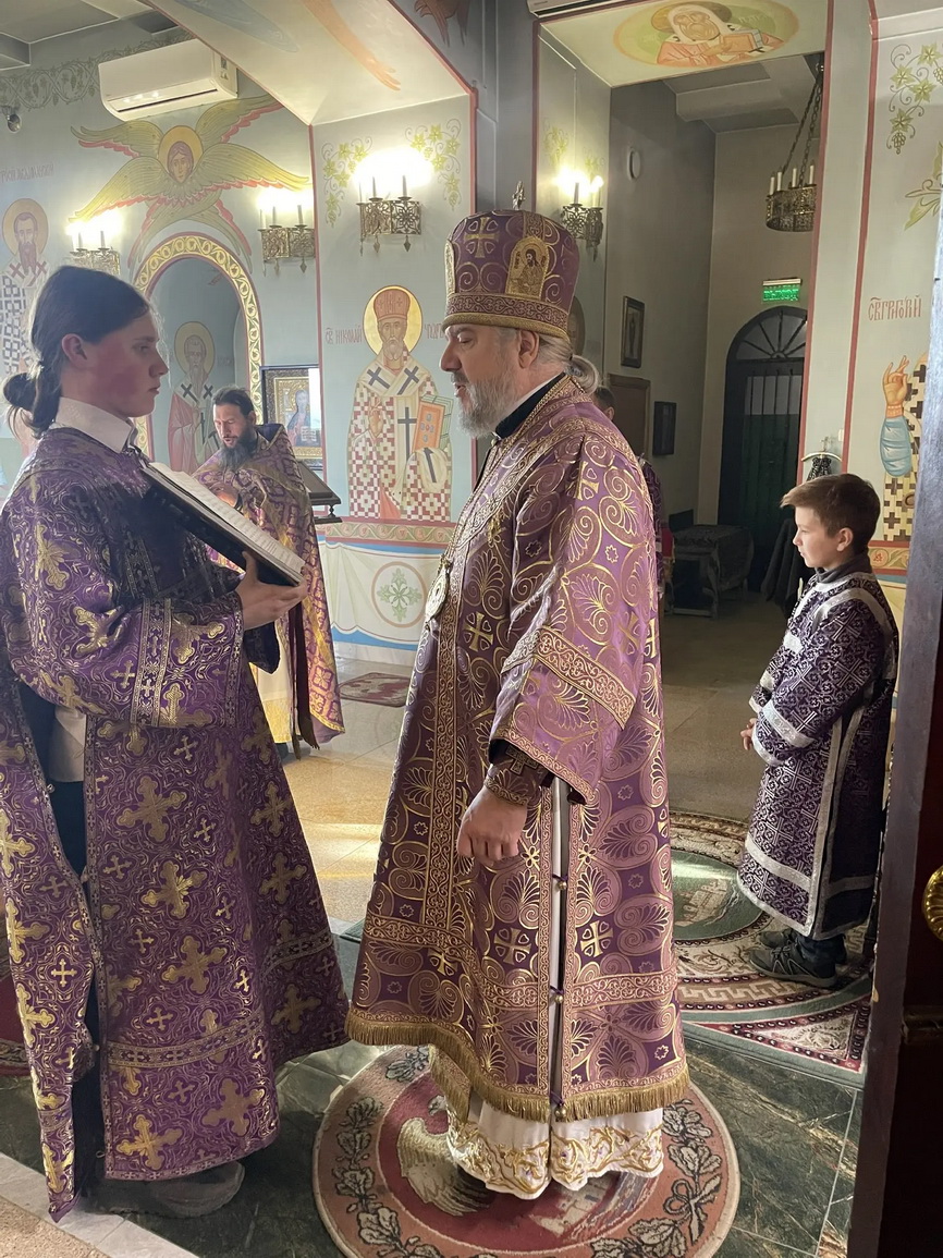Его Преосвященству сослужили: иерей Виталий Шаркеев; иерей Андрей Попов; иеромонах Ермоген (Крещенко).