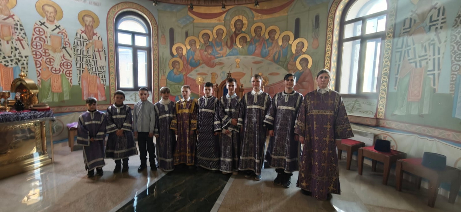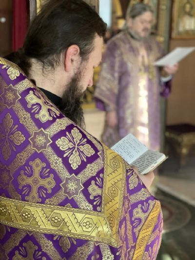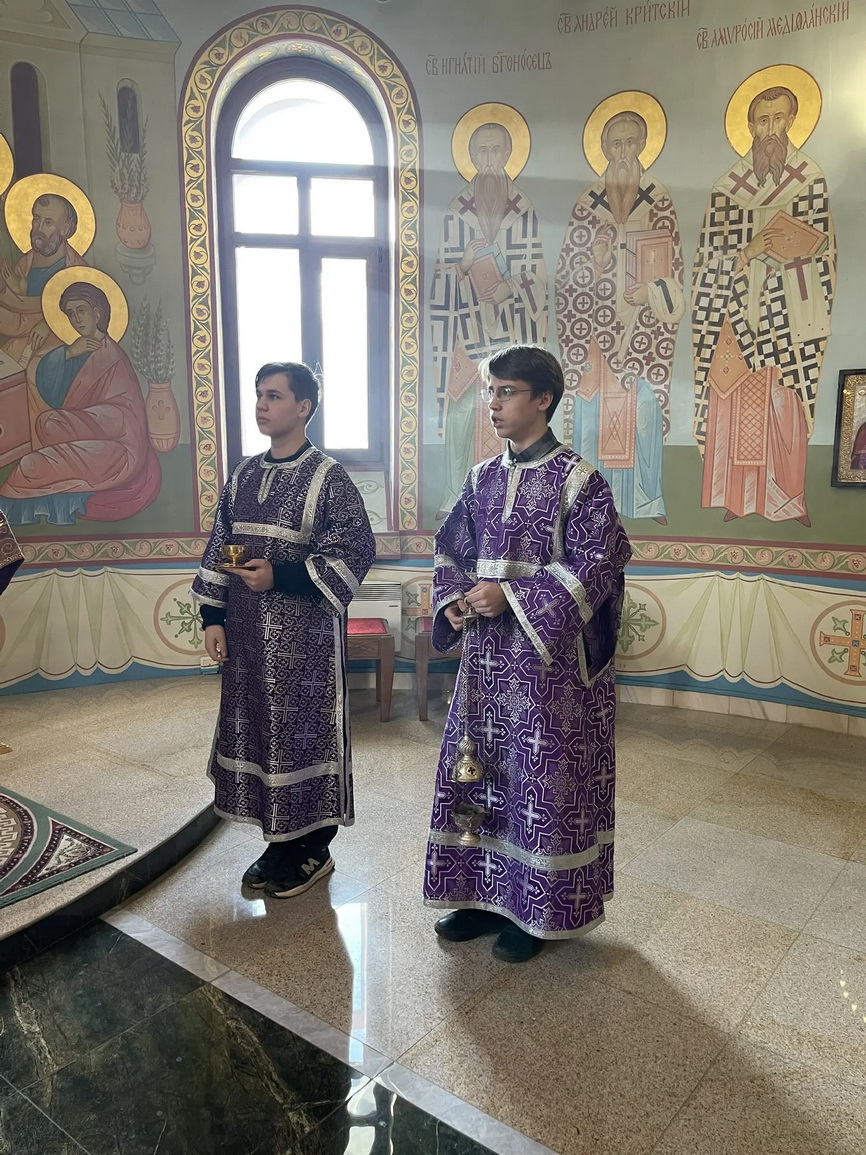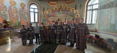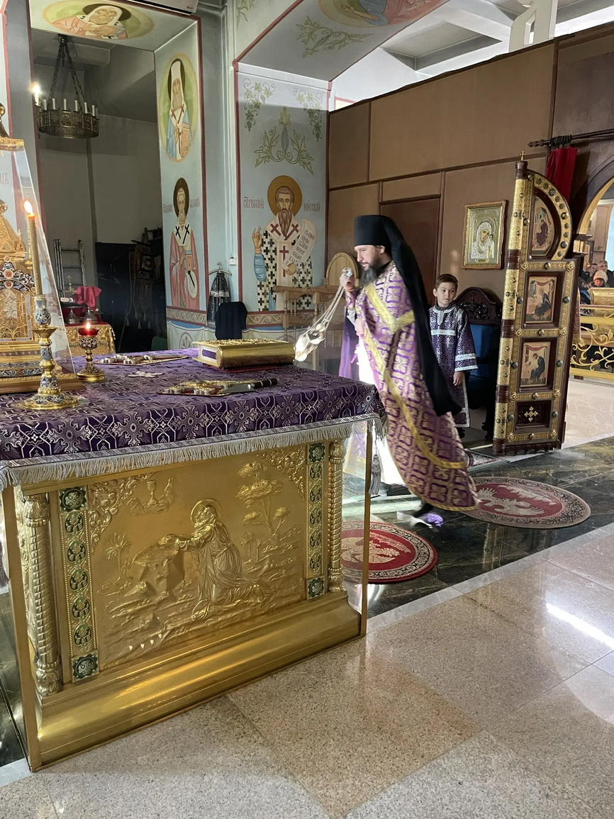Его Преосвященству сослужили: иерей Виталий Шаркеев; иерей Андрей Попов; иеромонах Ермоген (Крещенко).