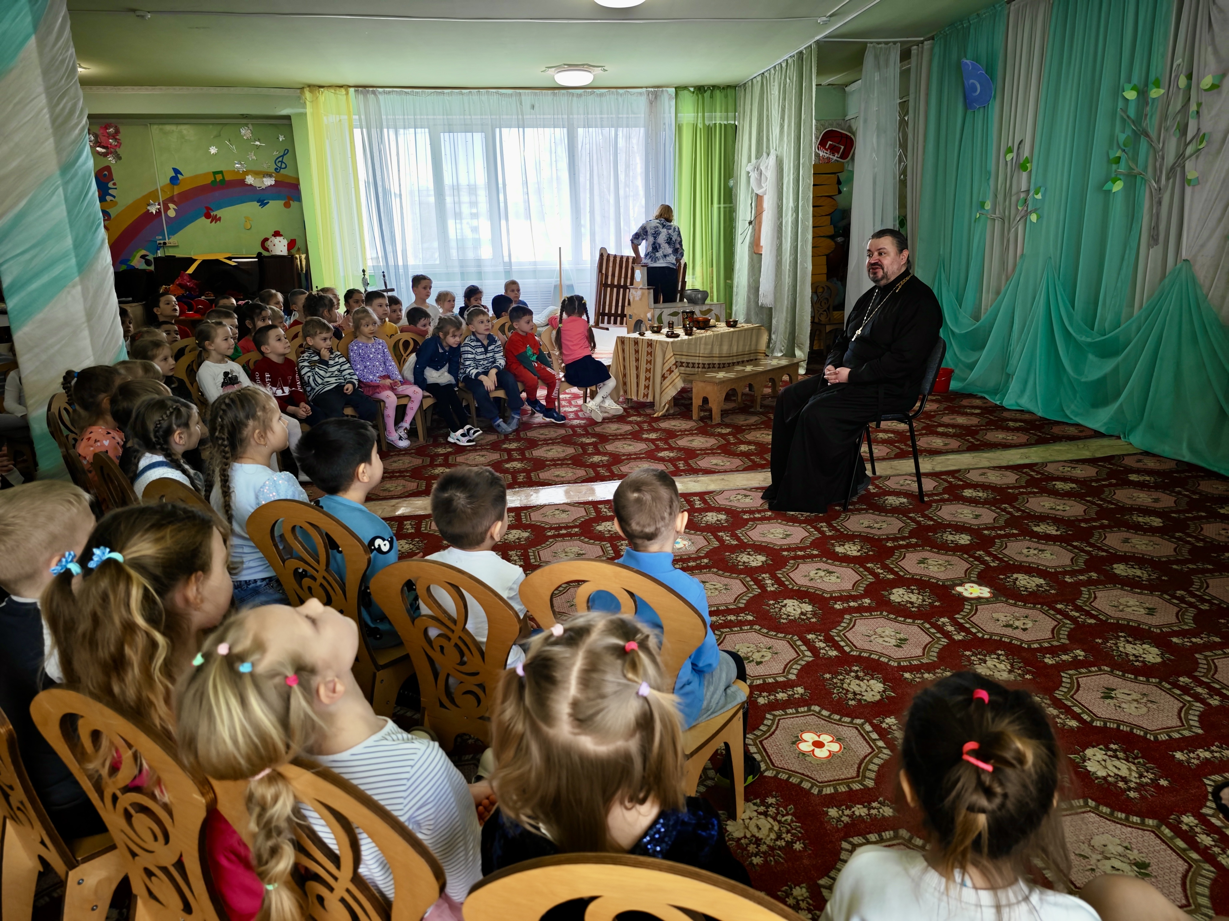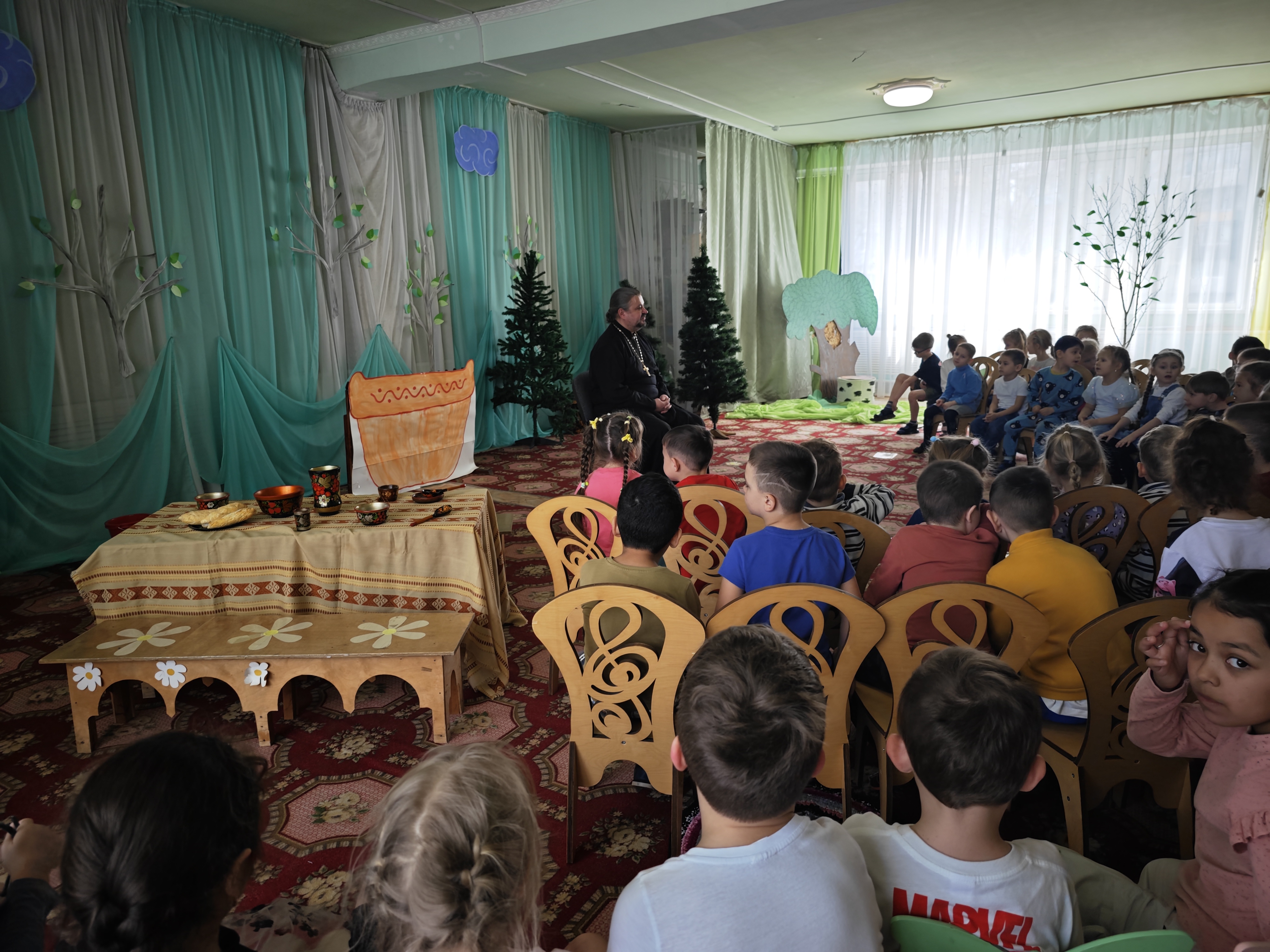 Руководитель миссионерского отдела иерей Виталий Шаркеев посетил детский сад №59 г. Находки и побеседовал с дошкольниками.