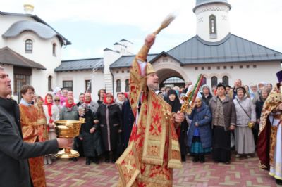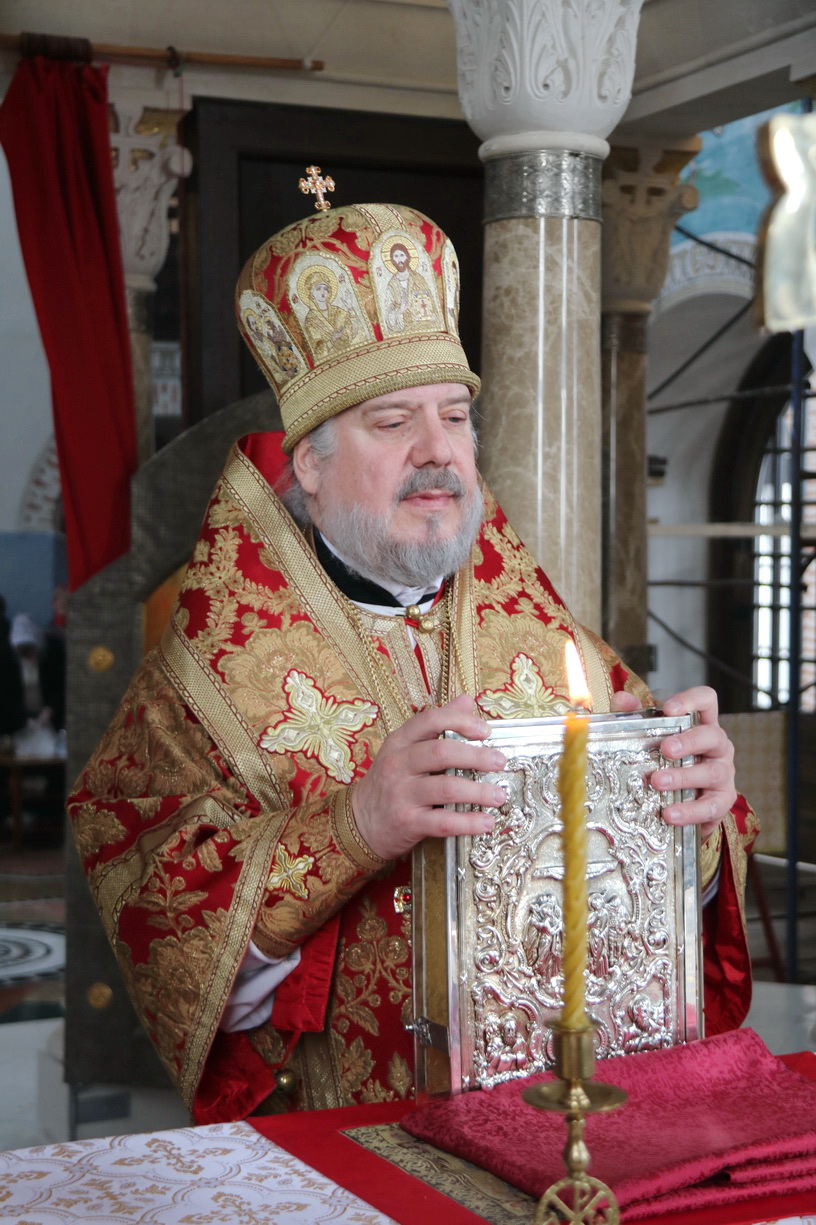По заамвонной молитве епископ Николай, в сослужении священства, совершил праздничный крестный ход, после владыка Николай обратился к присутствующим с архиерейским словом, в котором поздравил всех со Светлым Христовым Воскресением.