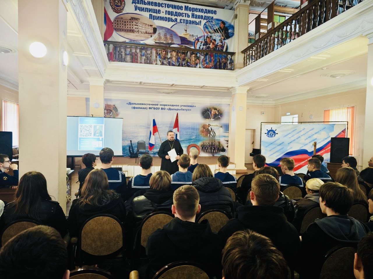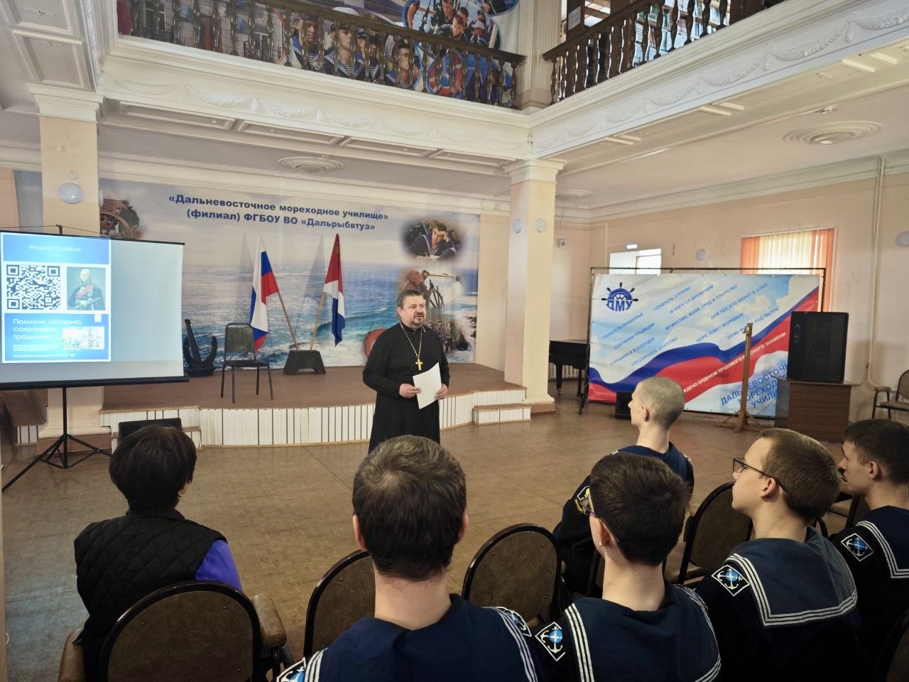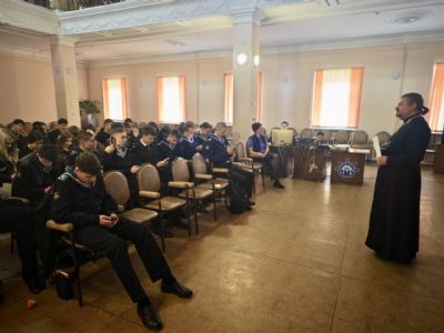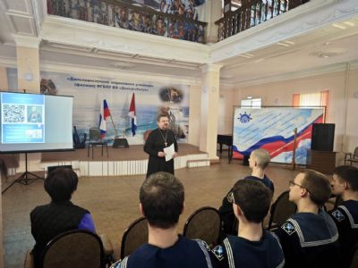 Священник провел лекцию об адмирале Федоре Ушакове в Дальневосточном мореходном училище.