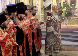 Владивосток. 15 апреля 2012 года, в праздник Светлого Христова Воскресения, митрополит Владивостокский и Приморский Вениамин в Покровском кафедральном соборе возглавил Соборное богослужение — Великую Пасхальную вечерню.