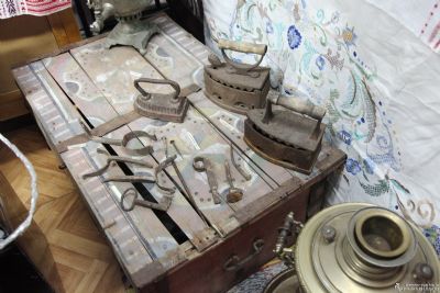 Один из самых любопытных разделов экспозиции – старинные бытовые вещи: лапти, веретено, прялки, чугунные утюги, самовары, старые игрушки. Как стремительно меняется мир вокруг нас! Многие вещи просто уходят из нашего обихода. Уходят навсегда, становятся историей.