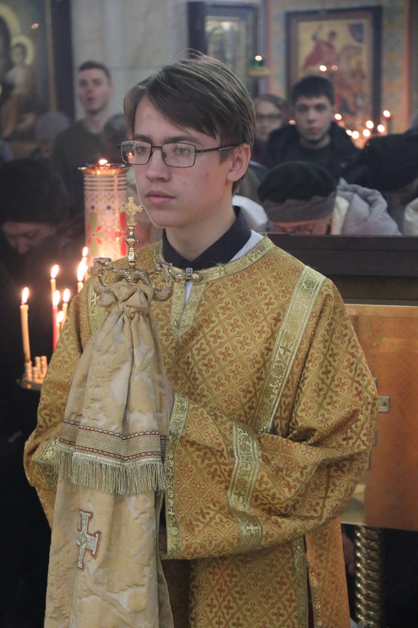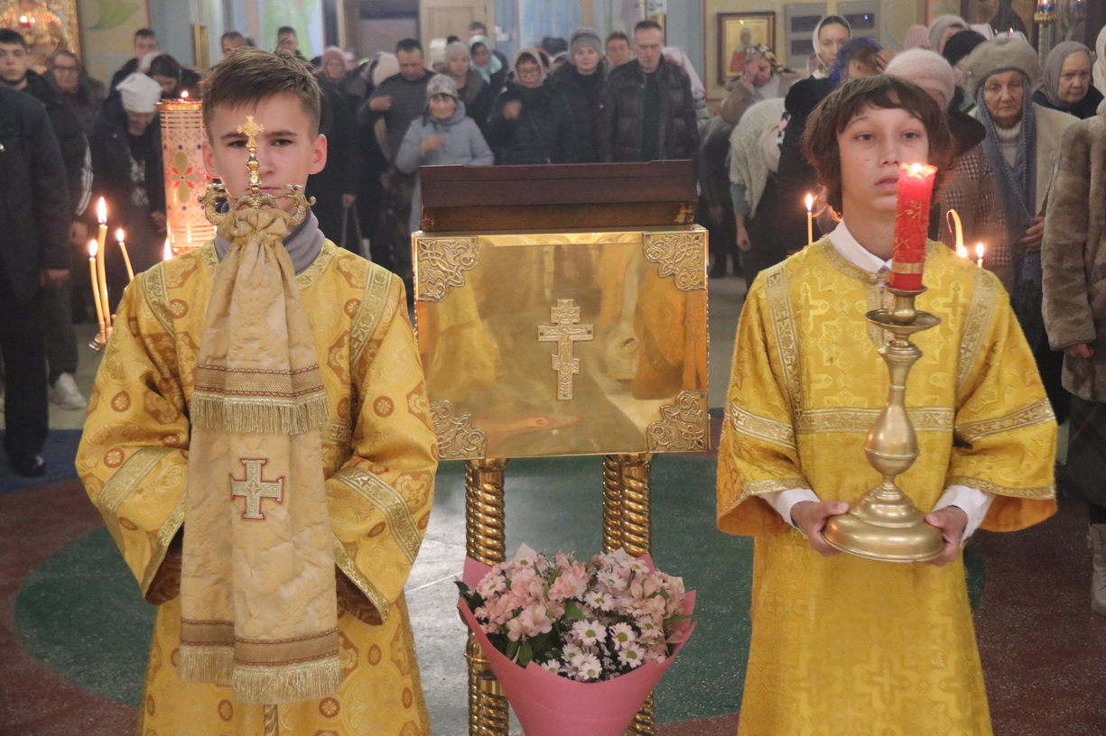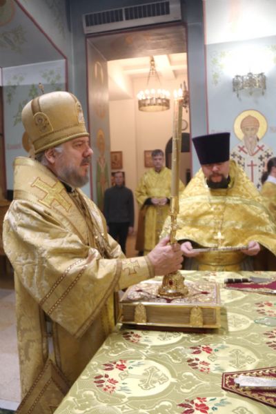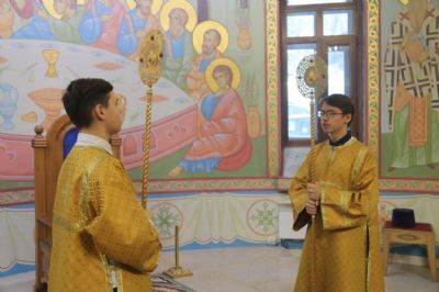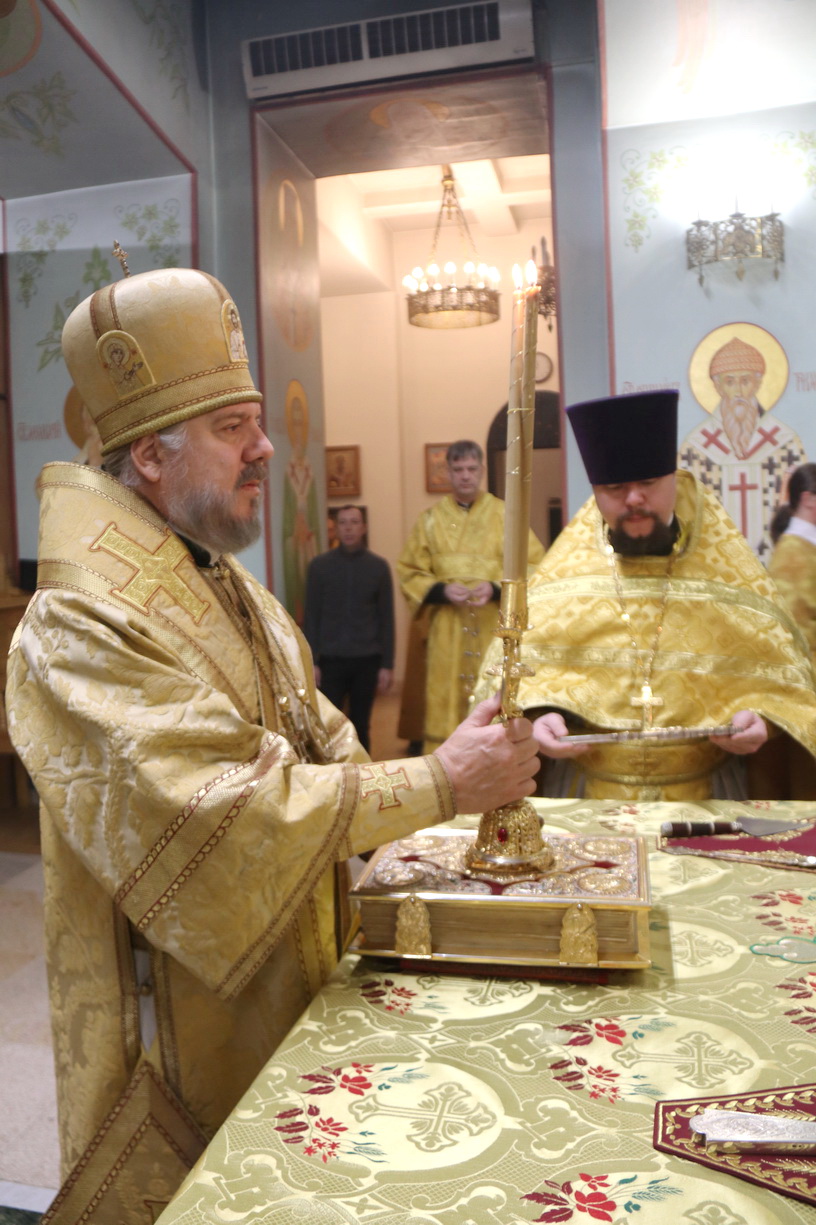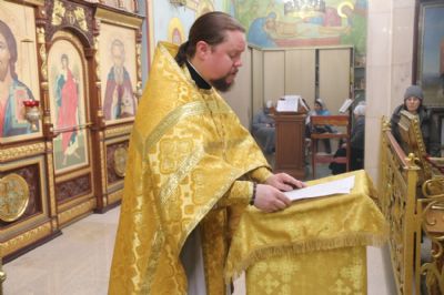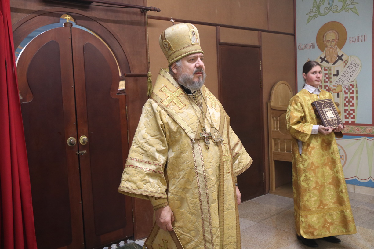 Его Преосвященству сослужили: иерей Виталий Шаркеев и иерей Андрей Попов.
