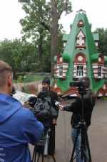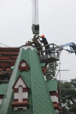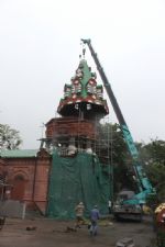 Процесс установки шатровой конструкции на крышу храма смогли заснять представители средств массовой информации – журналисты телеканалов «Россия», «ТНТ», «8 канал», фотокорреспонденты информагентств.