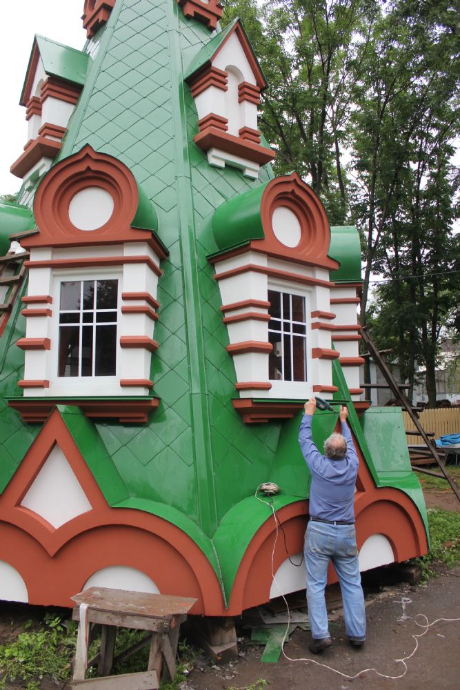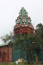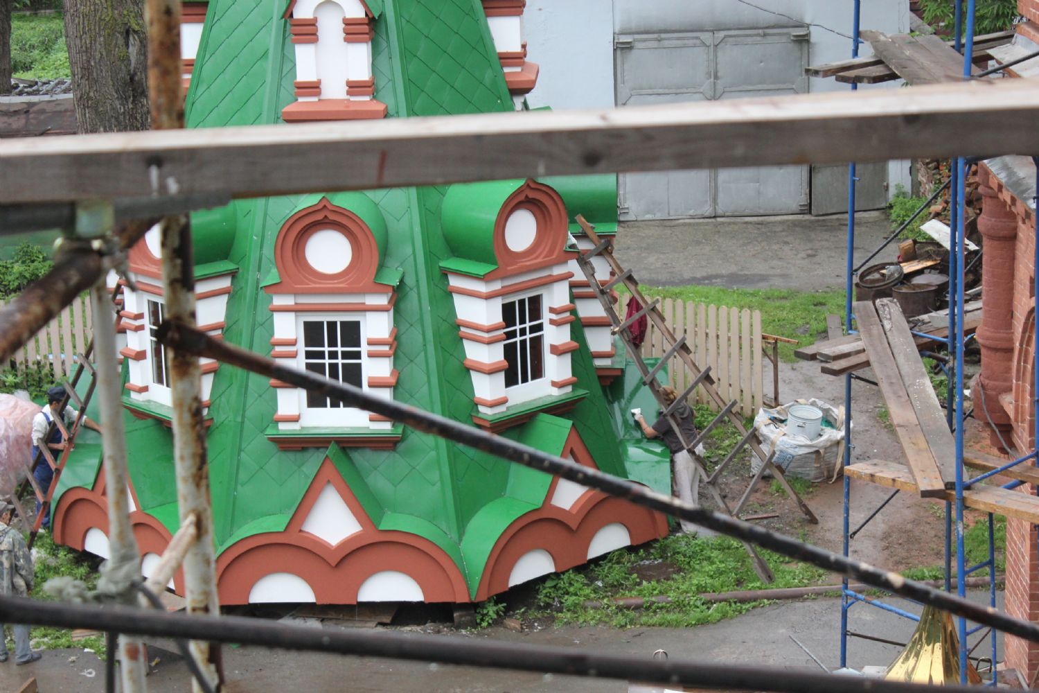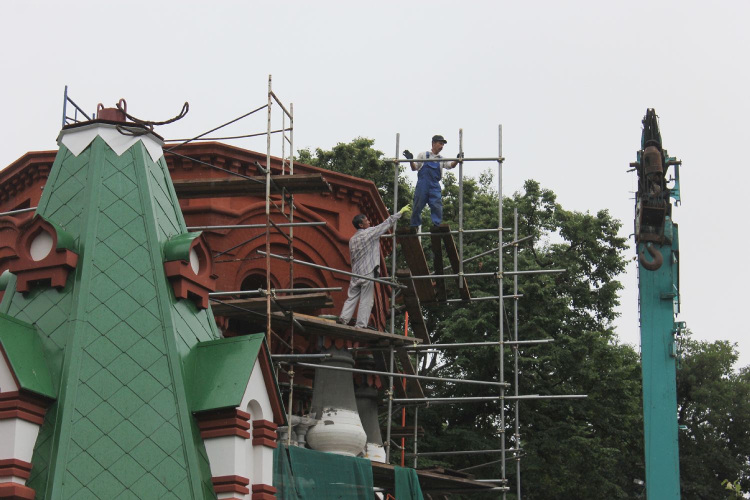 В конце июля строители успели установить на воссоздаваемую колокольню монастырского храма шатер. В августе - планируют водрузить купол и крест.