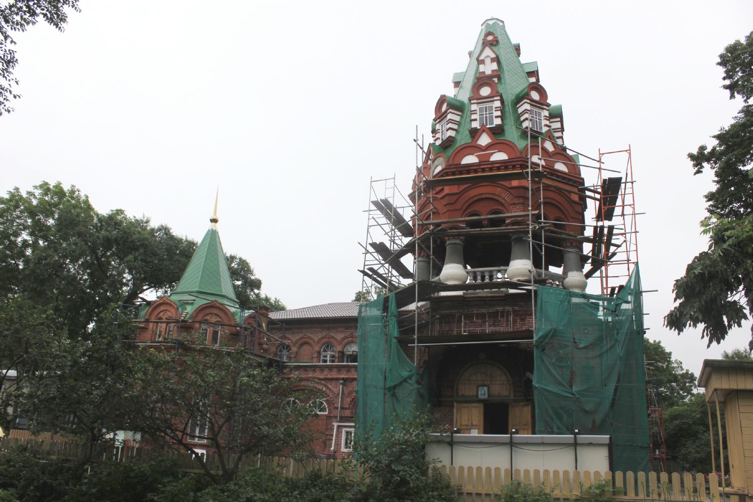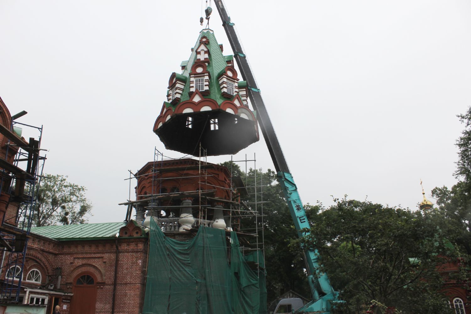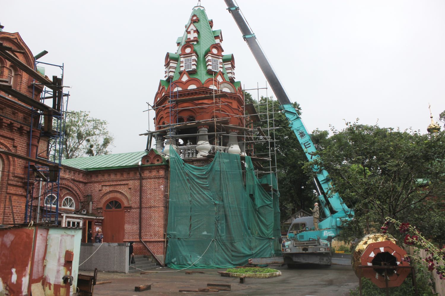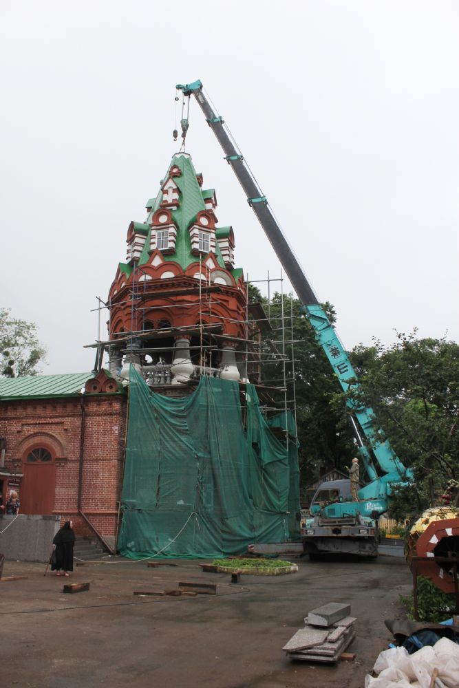 Владивосток. По благословению митрополита Владивостокского и Приморского Вениамина продолжается реконструкция исторических зданий Марфо-Мариинского монастыря на Седанке. В июле прошел этап воссоздания уникальной колокольни, работы производились на высоте – в течение месяца на крышу монастырского храма в честь священномученика Евсевия Самосатского были установлены колоннада и нижние, самые массивные колокола.