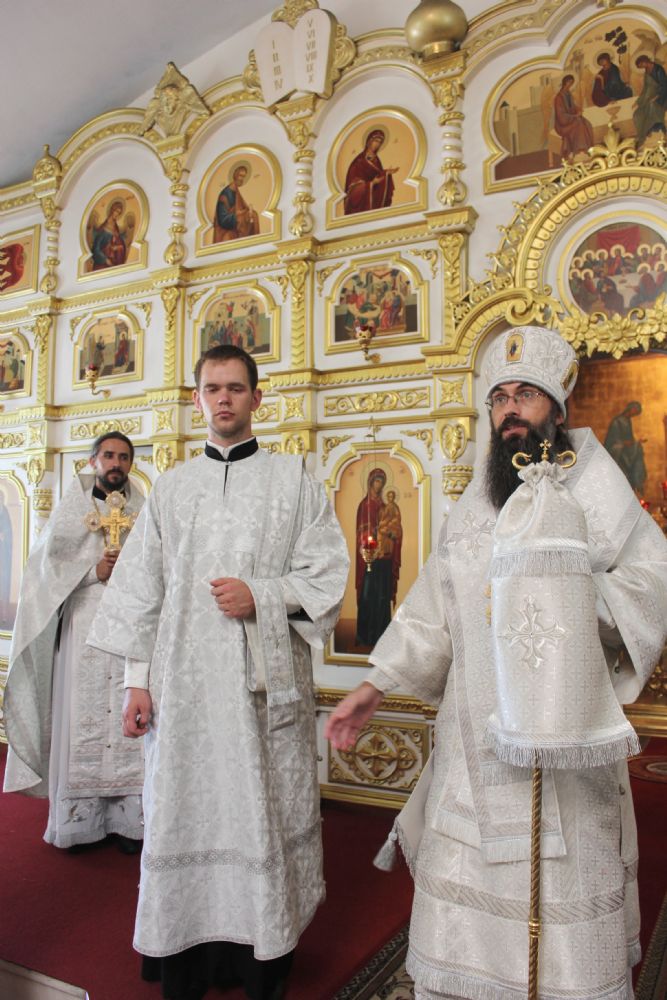За Литургией владыка Иннокентий, по благословению митрополита Владивостокского и Приморского Вениамина, совершил хиротонию – рукоположил во диакона учащегося Владивостокского Духовного училища Даниила Леонидовича Есакова.