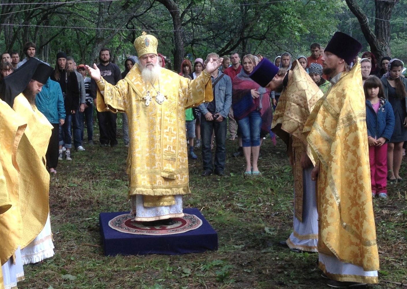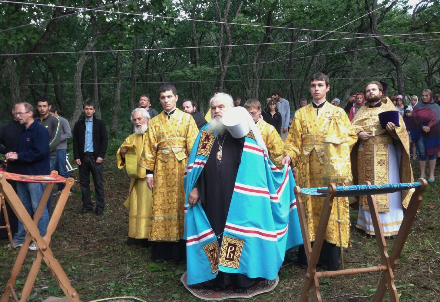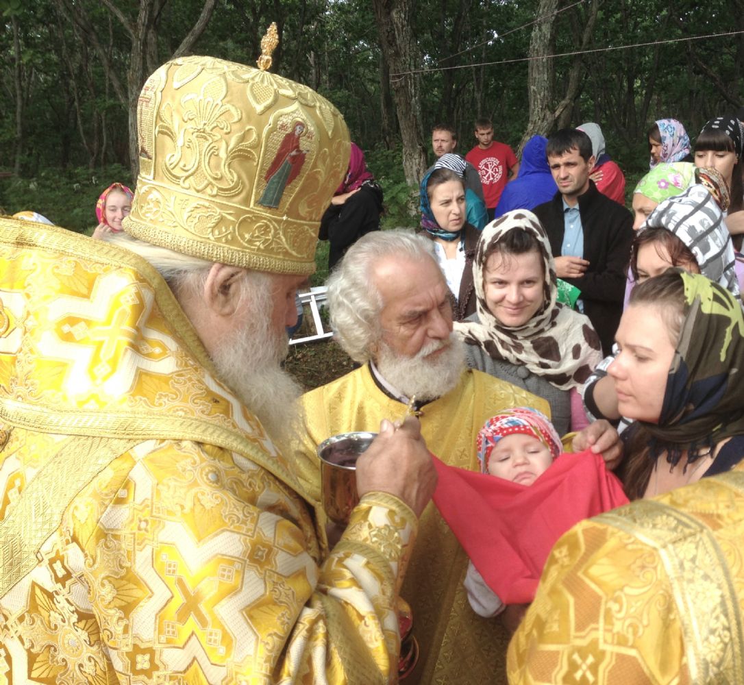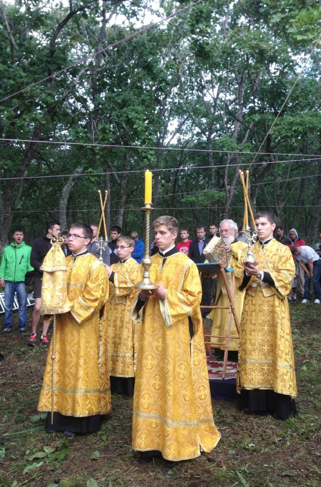 В Воскресенье, 8 сентября митрополит Владивостокский и Приморский Вениамин встретился с участниками форума и совершил под открытым небом на берегу Уссурийского залива Божественную литургию, за которой молились порядка 150 человек.