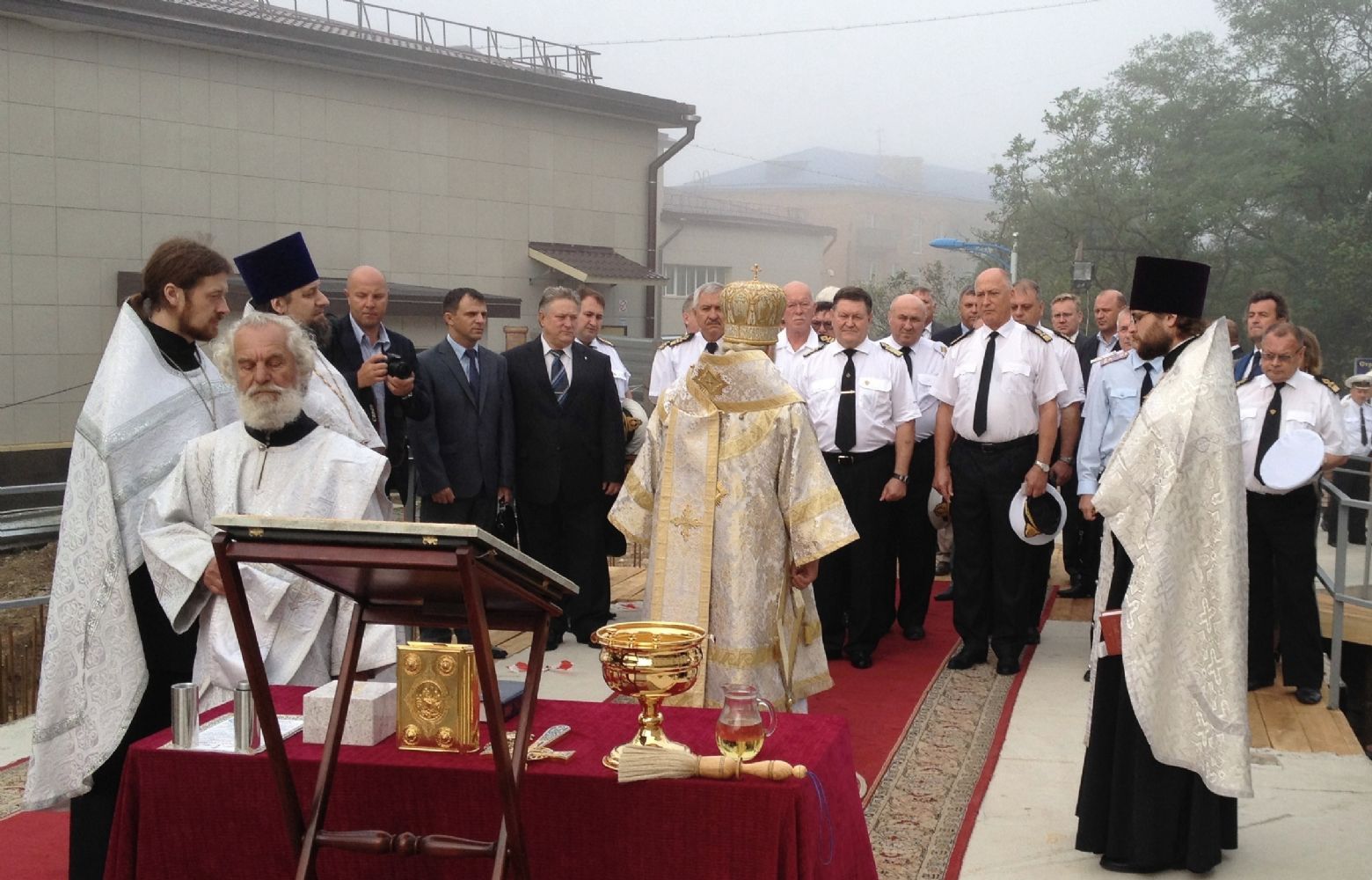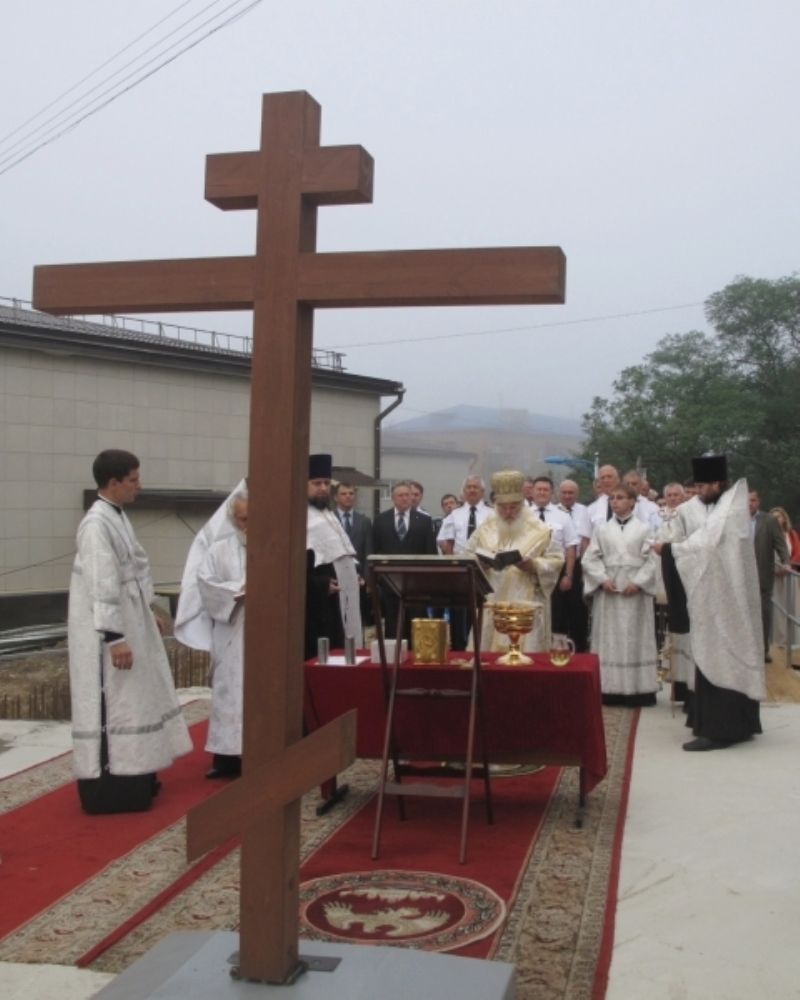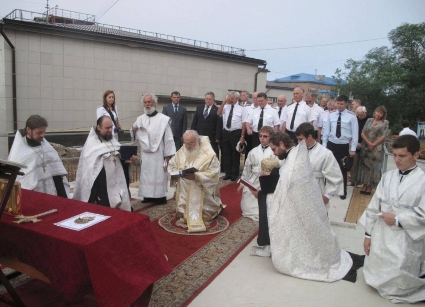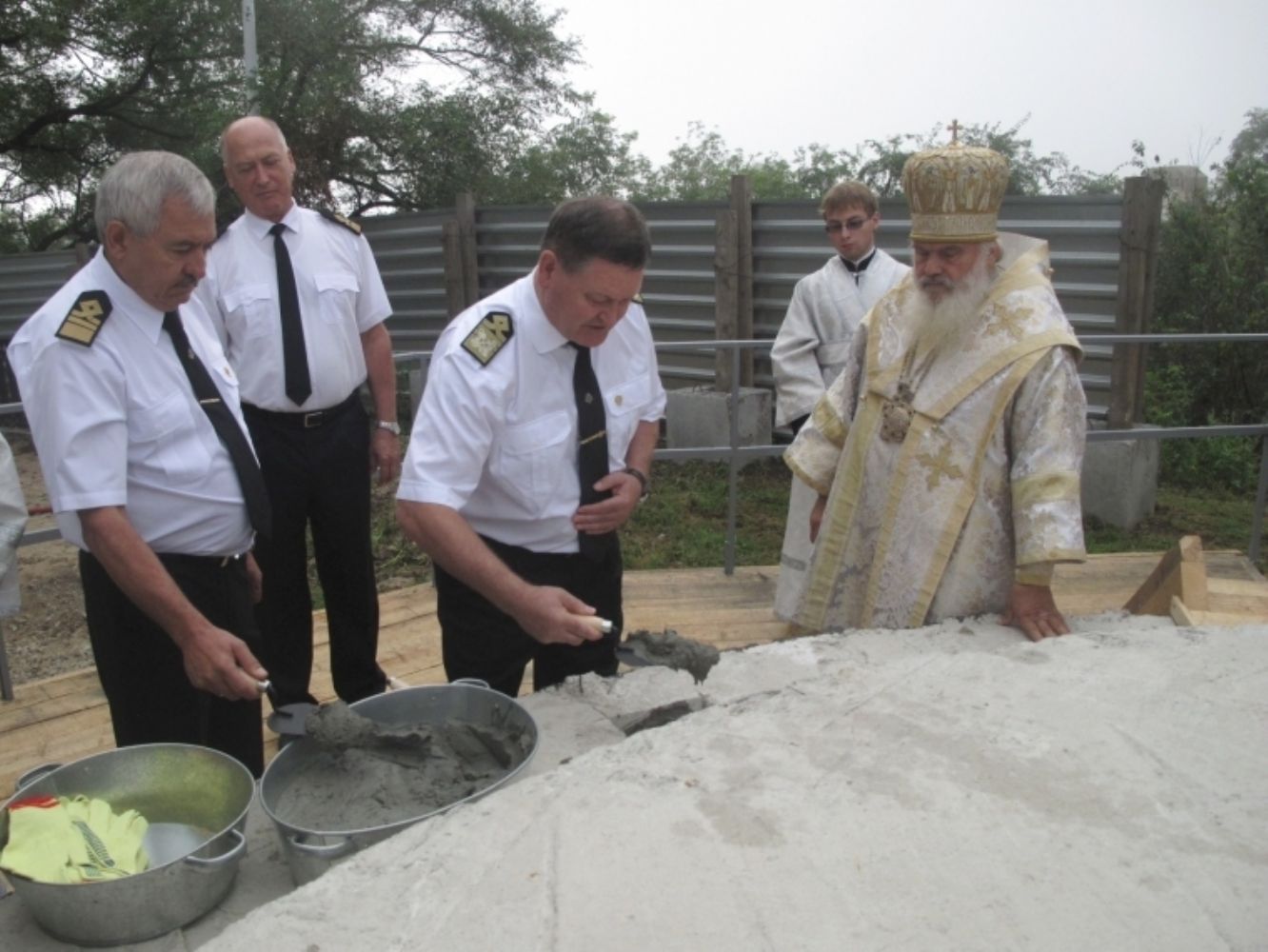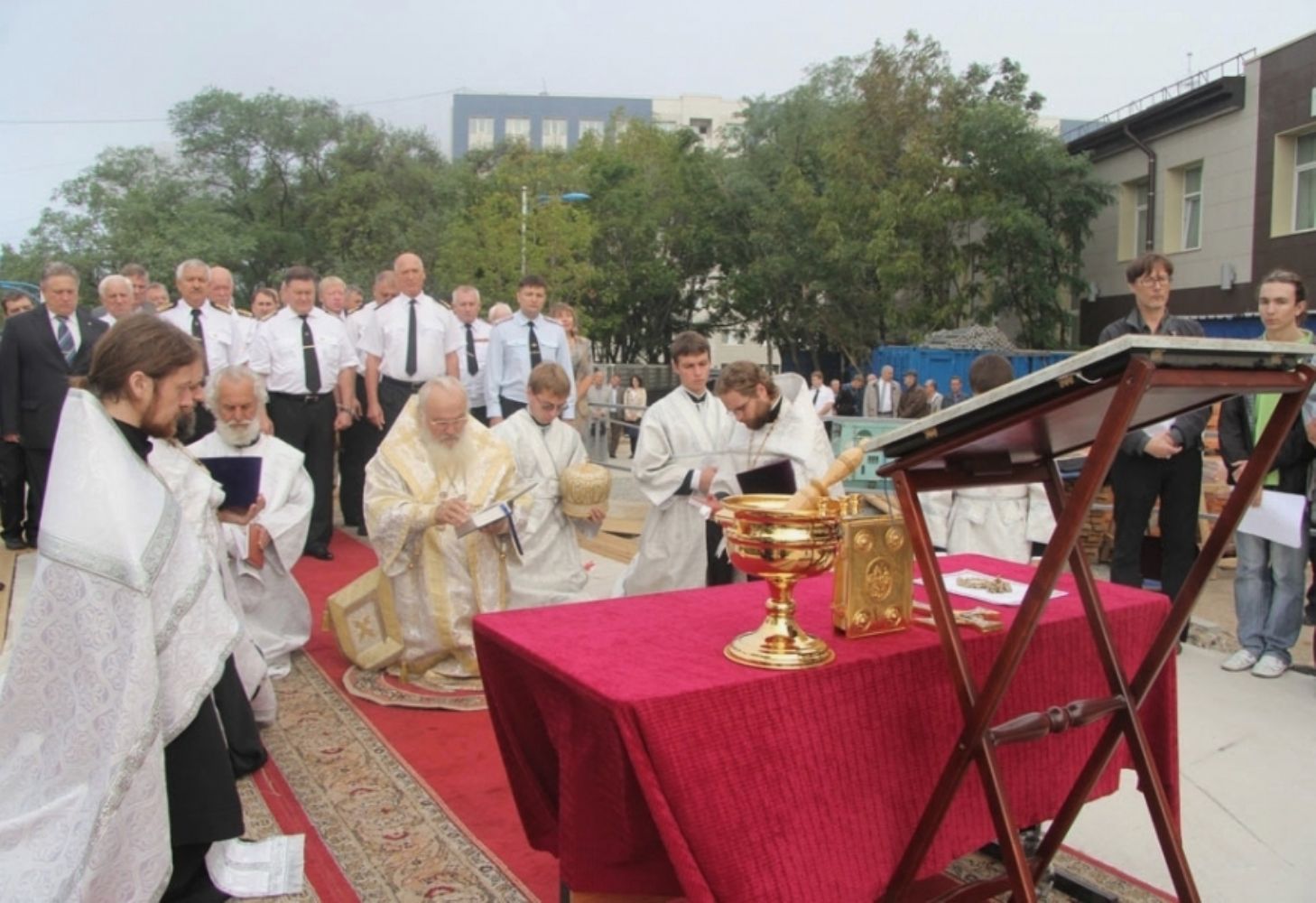Чин закладки храма совершил митрополит Владивостокский и Приморский Вениамин, в присутствии главы Росморречфлота А.А.Давыденко, преподавательского состава Морского госуниверситета им. адмирала Невельского, его бывших выпускников, ветеранов, участников строительства и благотворителей.