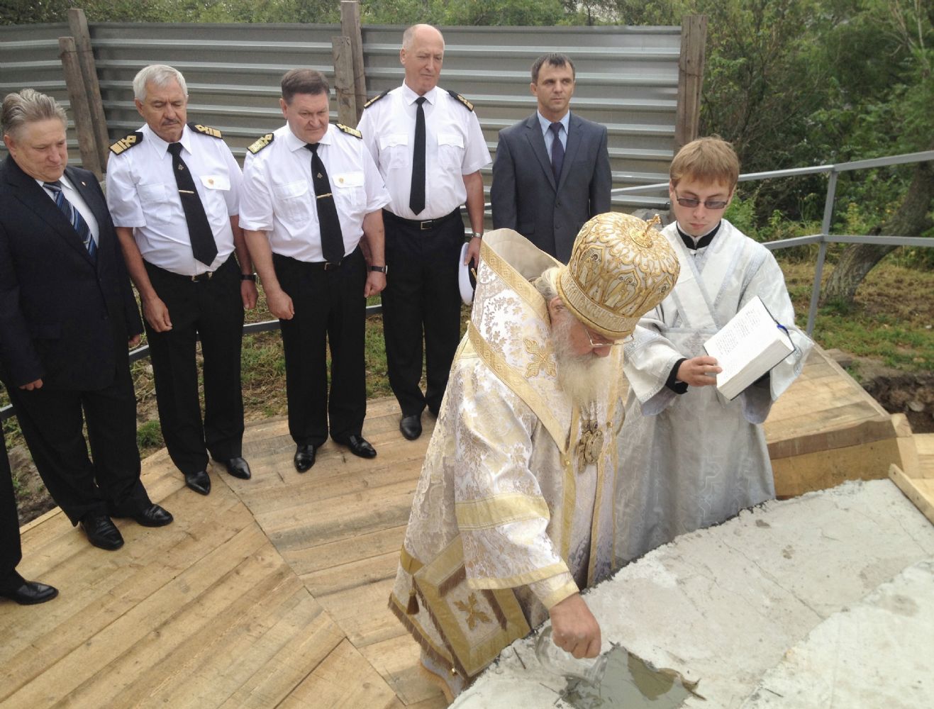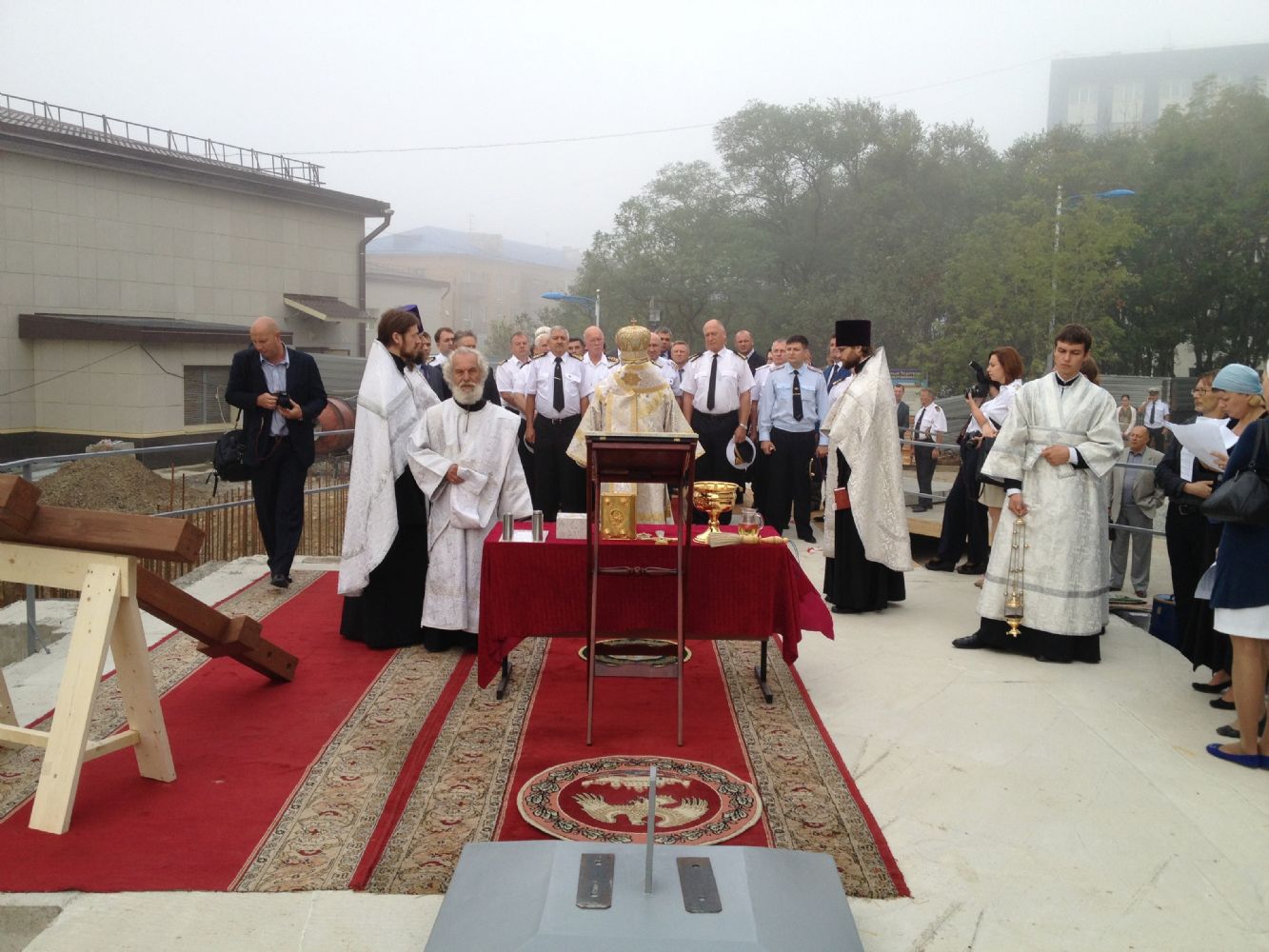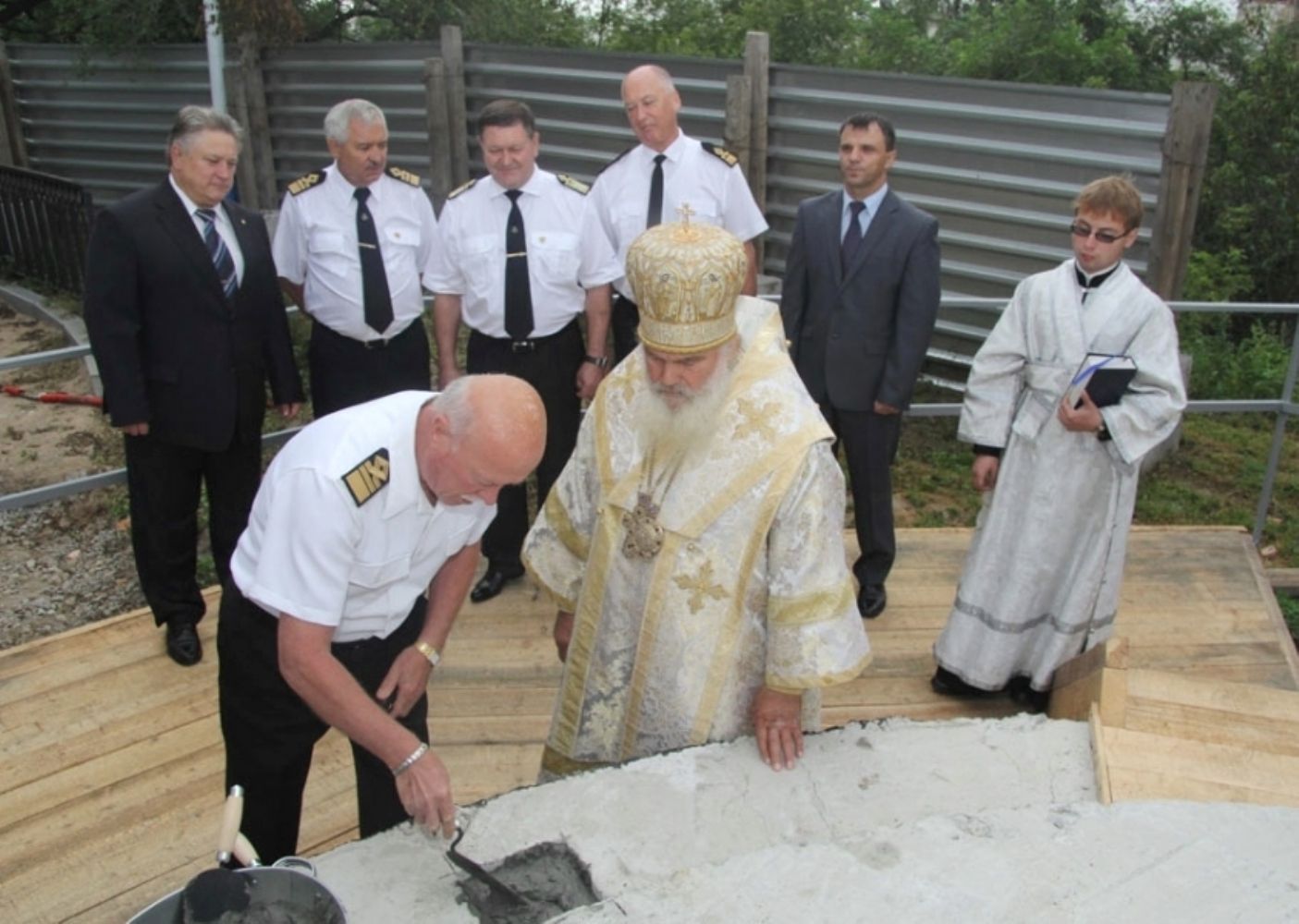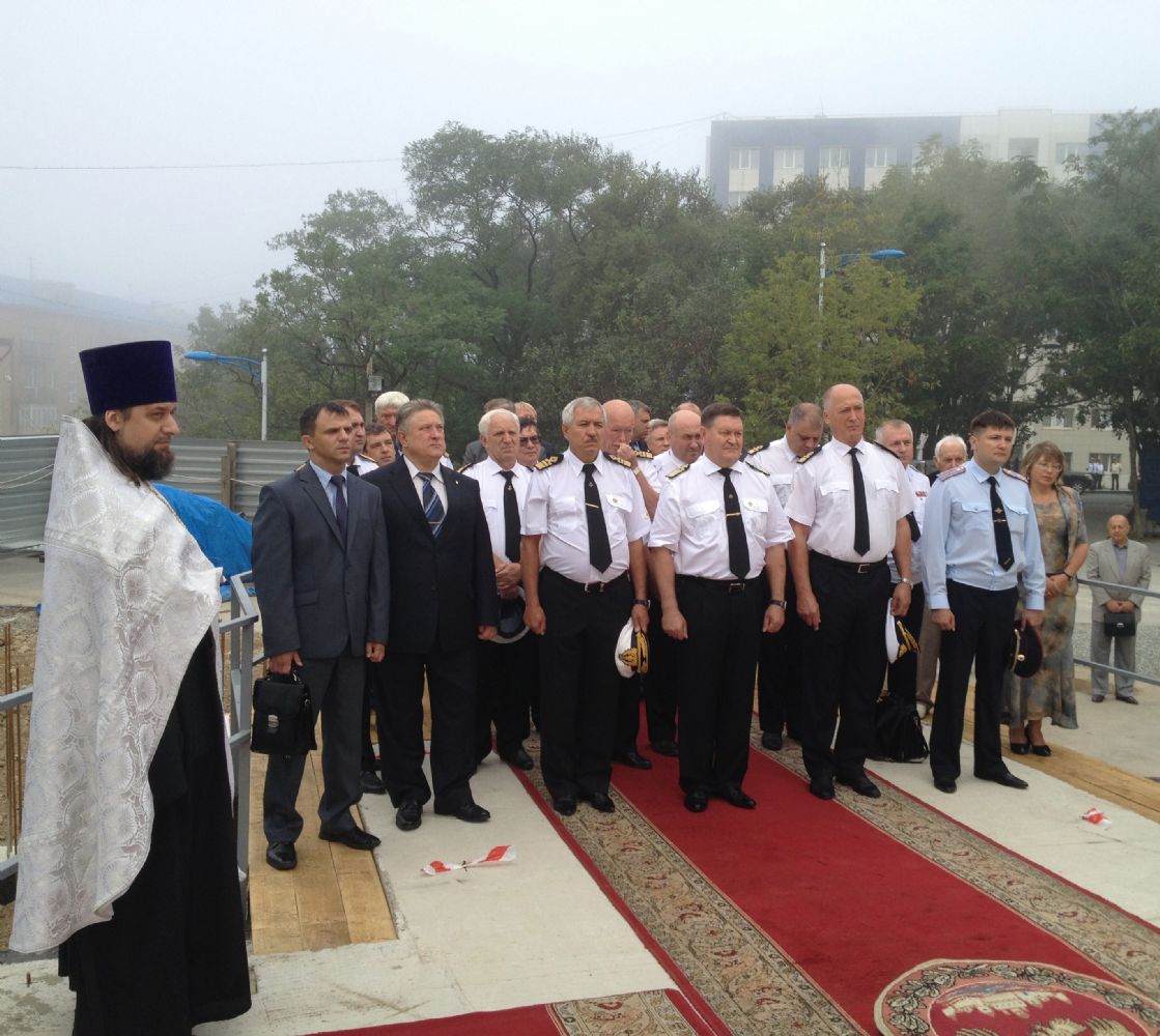 Чин закладки храма совершил митрополит Владивостокский и Приморский Вениамин, в присутствии главы Росморречфлота А.А.Давыденко, преподавательского состава Морского госуниверситета им. адмирала Невельского, его бывших выпускников, ветеранов, участников строительства и благотворителей.