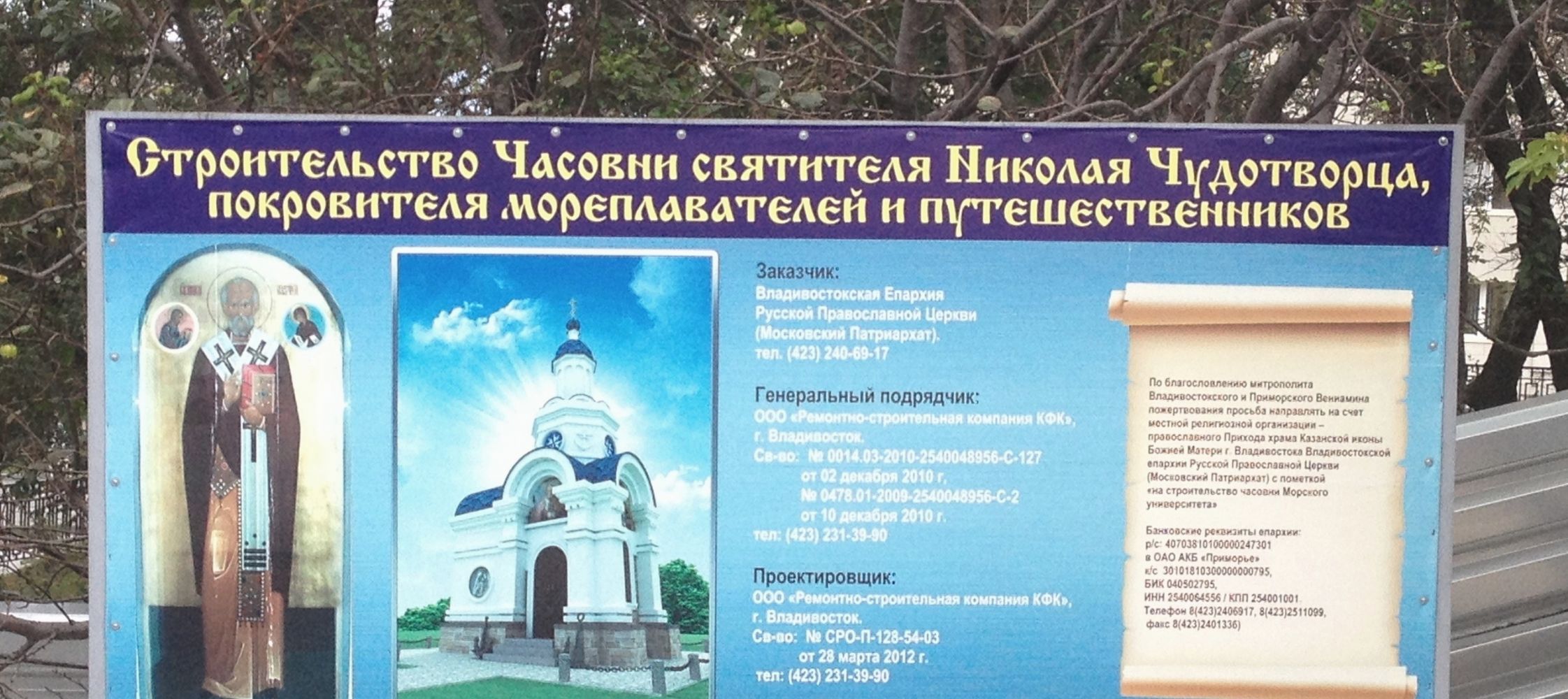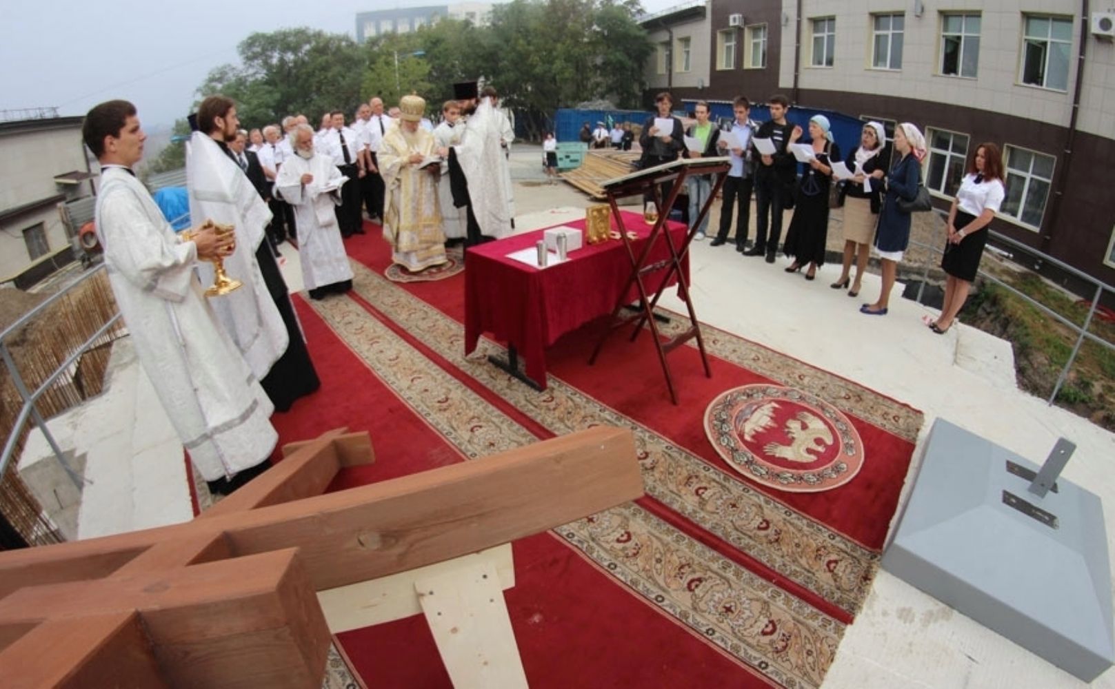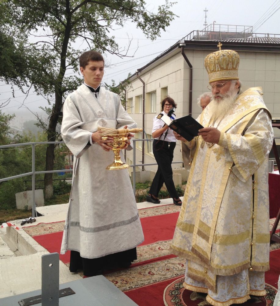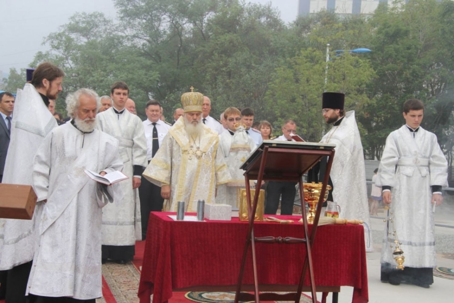 Владивосток. 9 сентября 2013 года митрополит Владивостокский и Приморский Вениамин совершил чин закладки храма в честь святителя Николая Чудотворца, небесного покровителя мореплавателей.