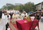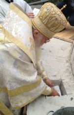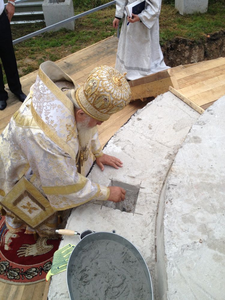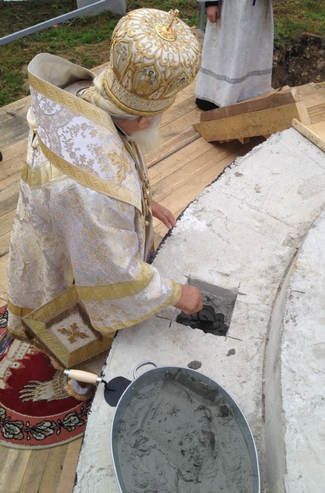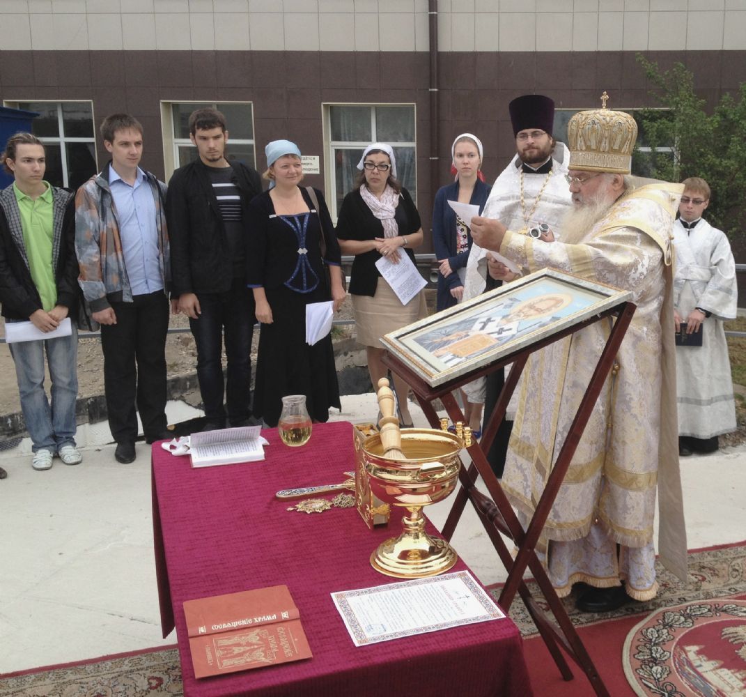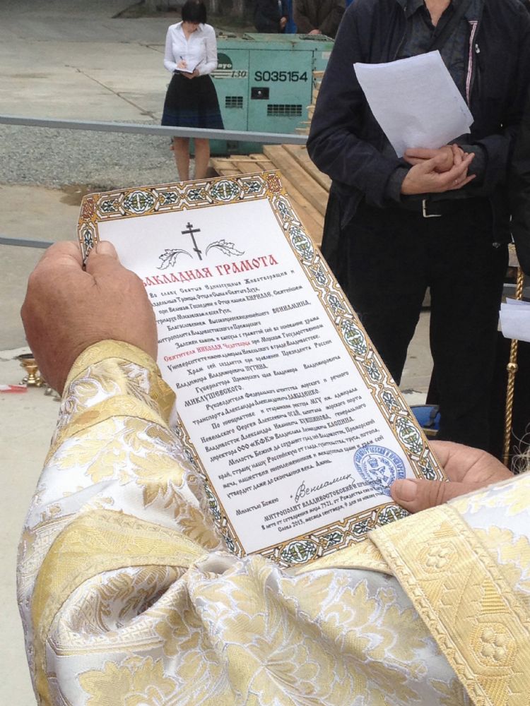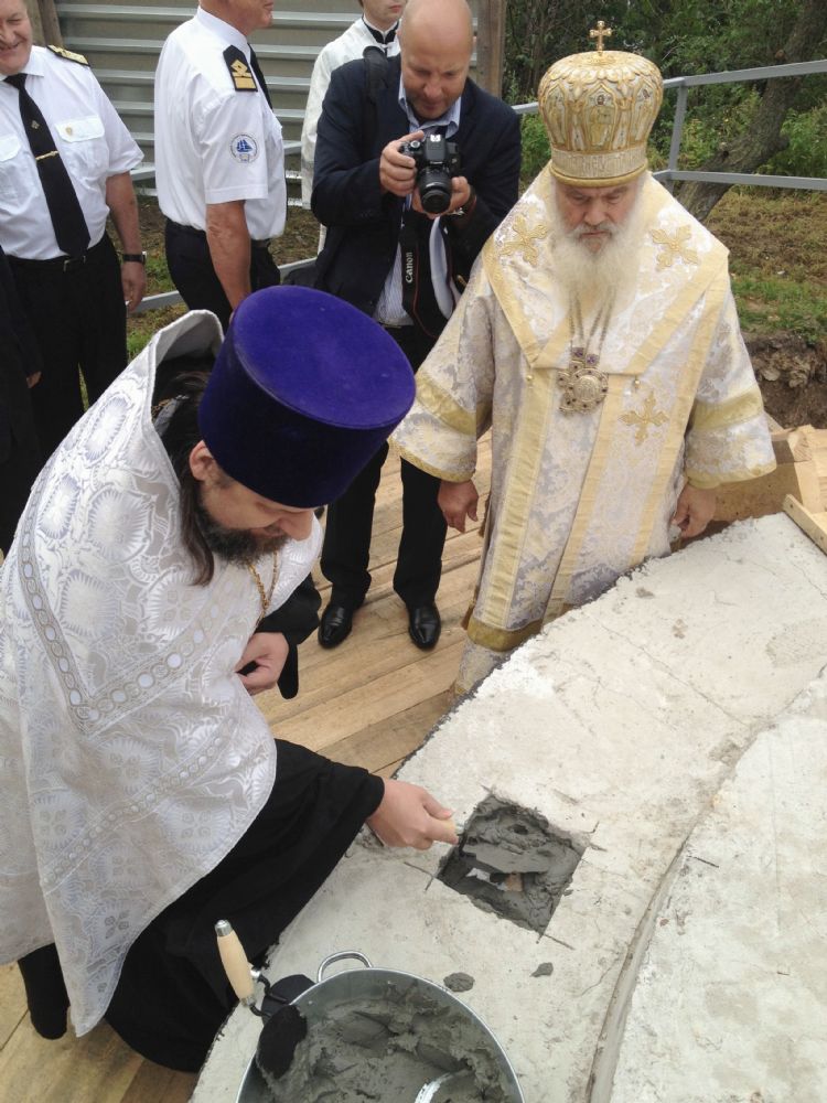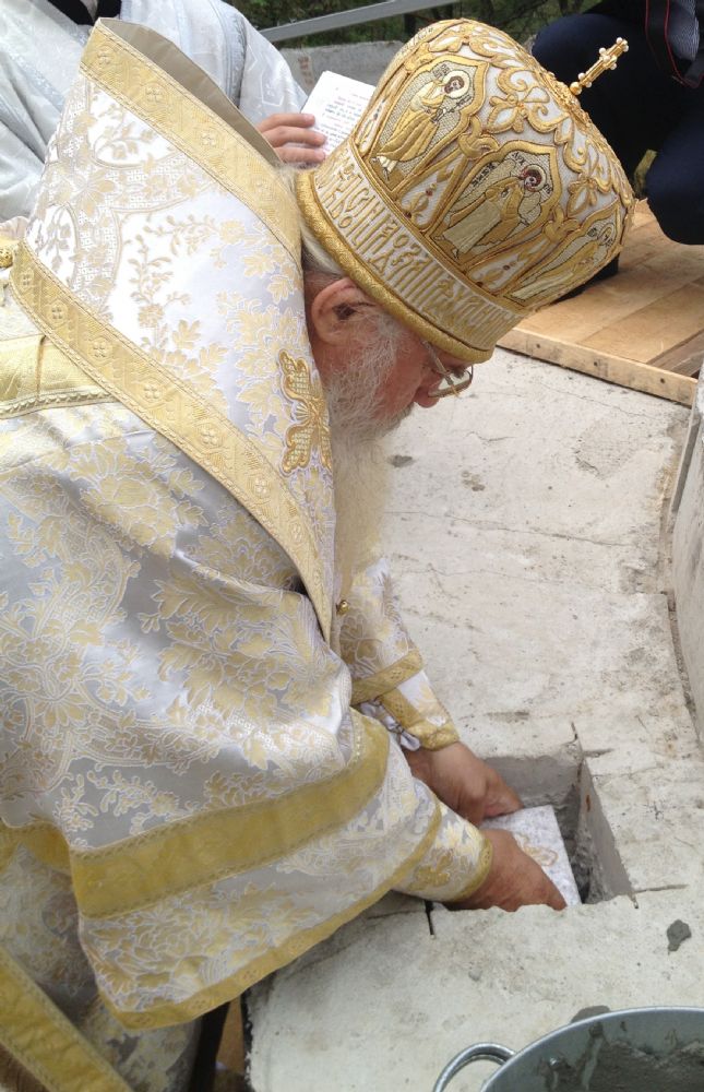 На место, где будет стоять престол, был водружен Крест. Митрополит Вениамин огласил Закладную архиерейскую грамоту, которая затем была помещена в капсулу и заложена в основание храма. Также в основание храма был заложен краеугольный камень. Основание храма было освящено, окроплено святой водой, дабы дальнейшее сооружение этой церкви обрело Божию помощь и благословение.