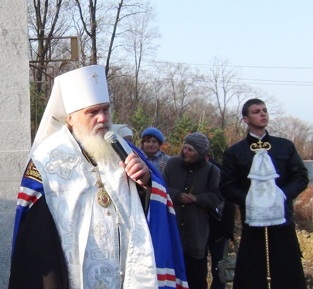Митрополит Владивостокский и Приморский Вениамин совершил чин освящения мемориальной часовни, а также отслужил заупокойную литию по всем невинно убиенным в годы репрессий.